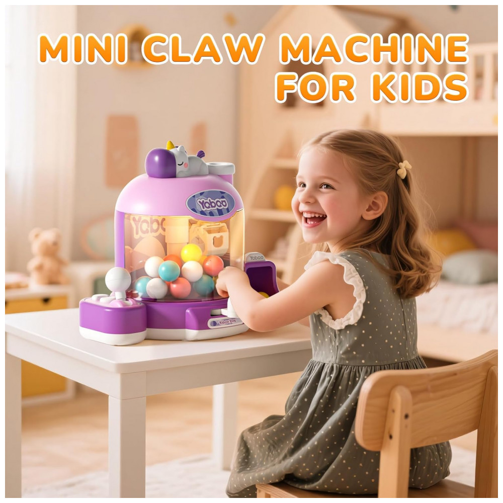 A Máquina de Garra Mini Skirfy Unicórnio é um brinquedo arcade encantador para crianças de 6 a 8 anos, ideal para festas, jogos em família e momentos divertidos. Feita em plástico resistente PC e ABS com design roxo temático de unicórnio, esta máquina dispensadora possui luzes LED, som ajustável com modo mudo, e controle por botão para agarrar prêmios e cápsulas de doces ou brinquedos. Alimenta-se por 3 pilhas AA (não incluídas), permitindo fácil uso portátil em casa ou eventos.