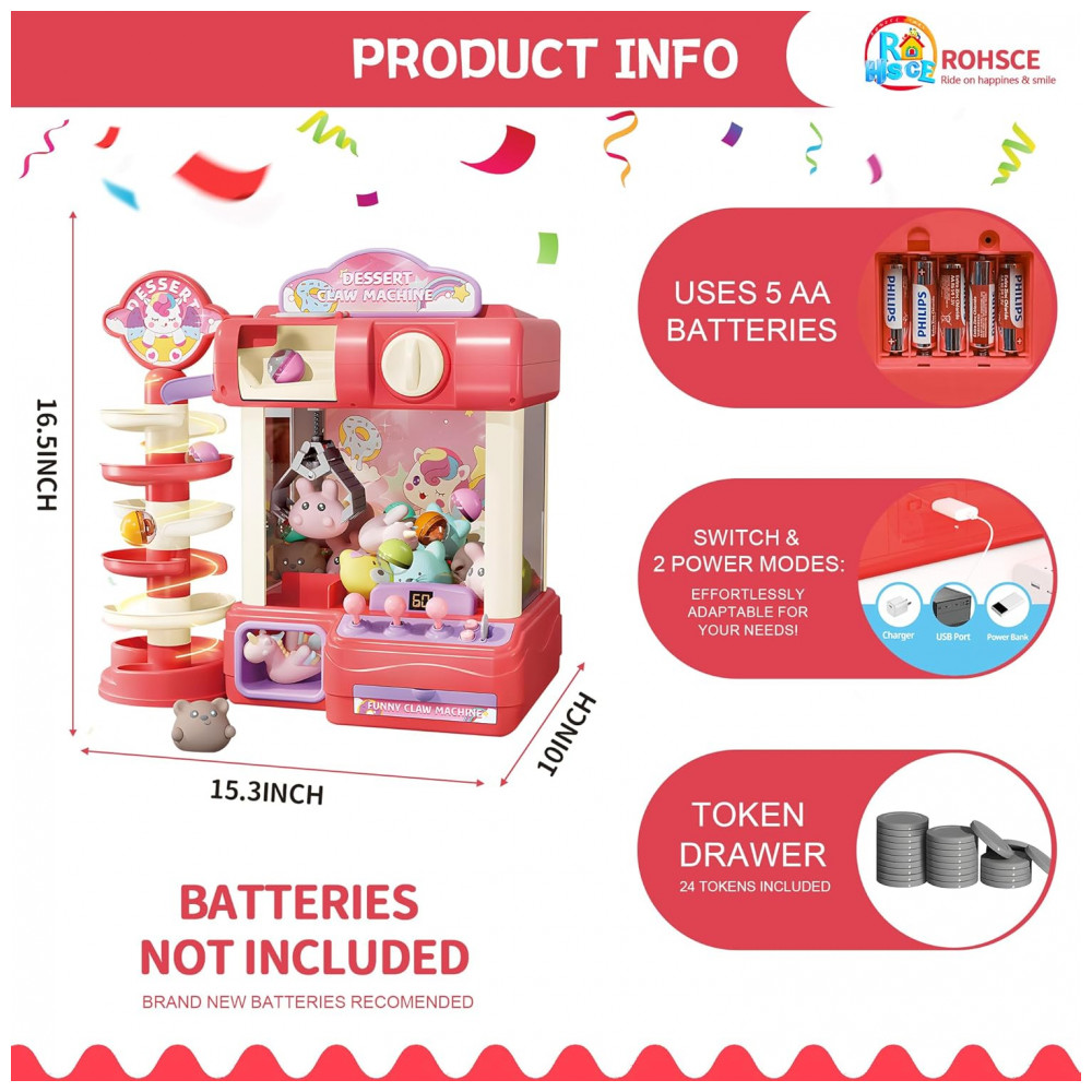 Máquina de Garra ROHSCE Azul Brinquedo Arcade Infantil com Luzes e Sons Vending de Doces para Crianças de 6 a 12 Anos