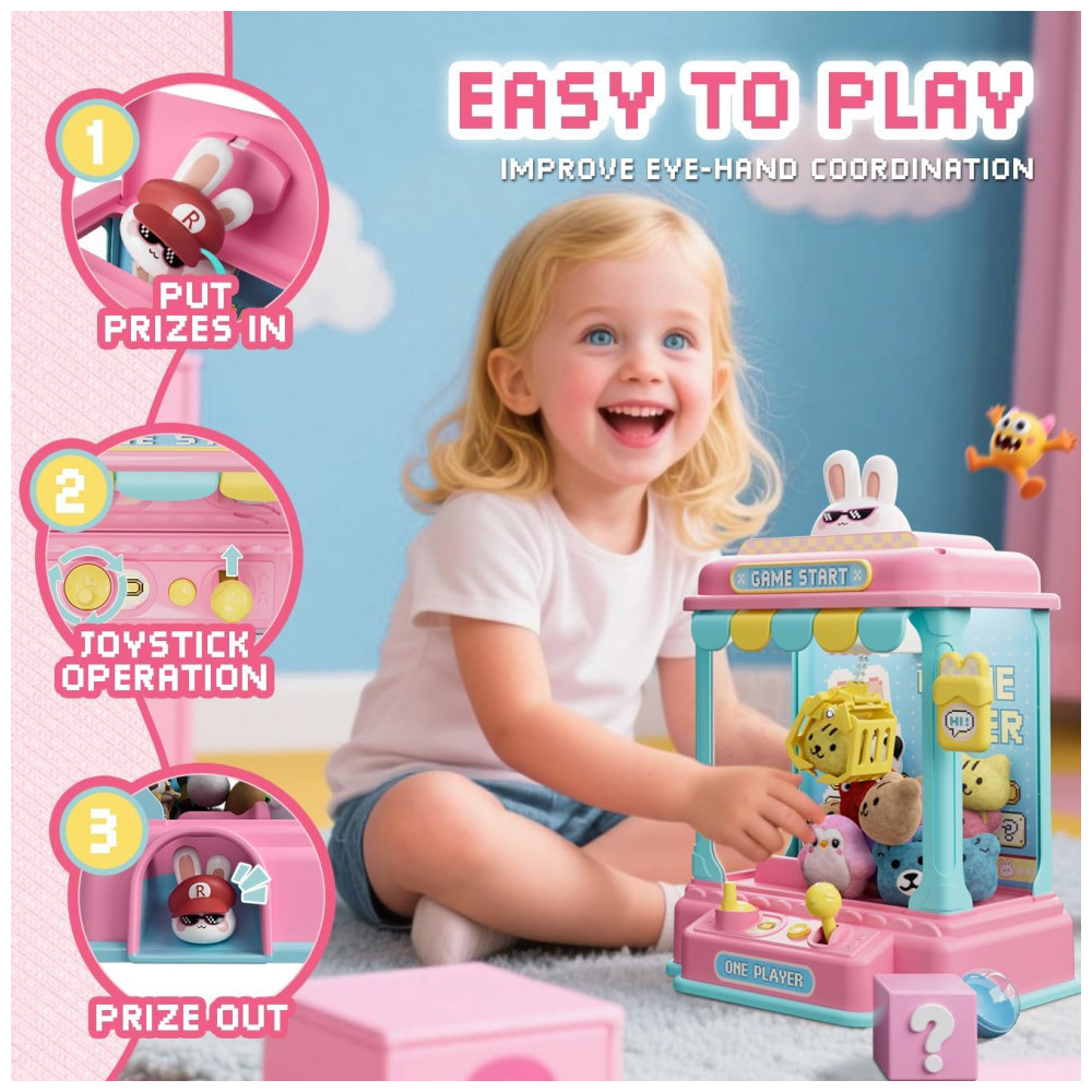A Máquina de Garra Rosa e Azul “Pixel Art Rabbit” da JoyfoxToy une estética divertida inspirada em coelhinhos pixelizados com a emoção de um arcade em miniatura para crianças de 3 a 8 anos. O brinquedo chega pronto para uso, com 10 cápsulas coloridas, 10 pelúcias aleatórias e espaço para que você adicione doces, surpresas ou outros pequenos prêmios personalizados.