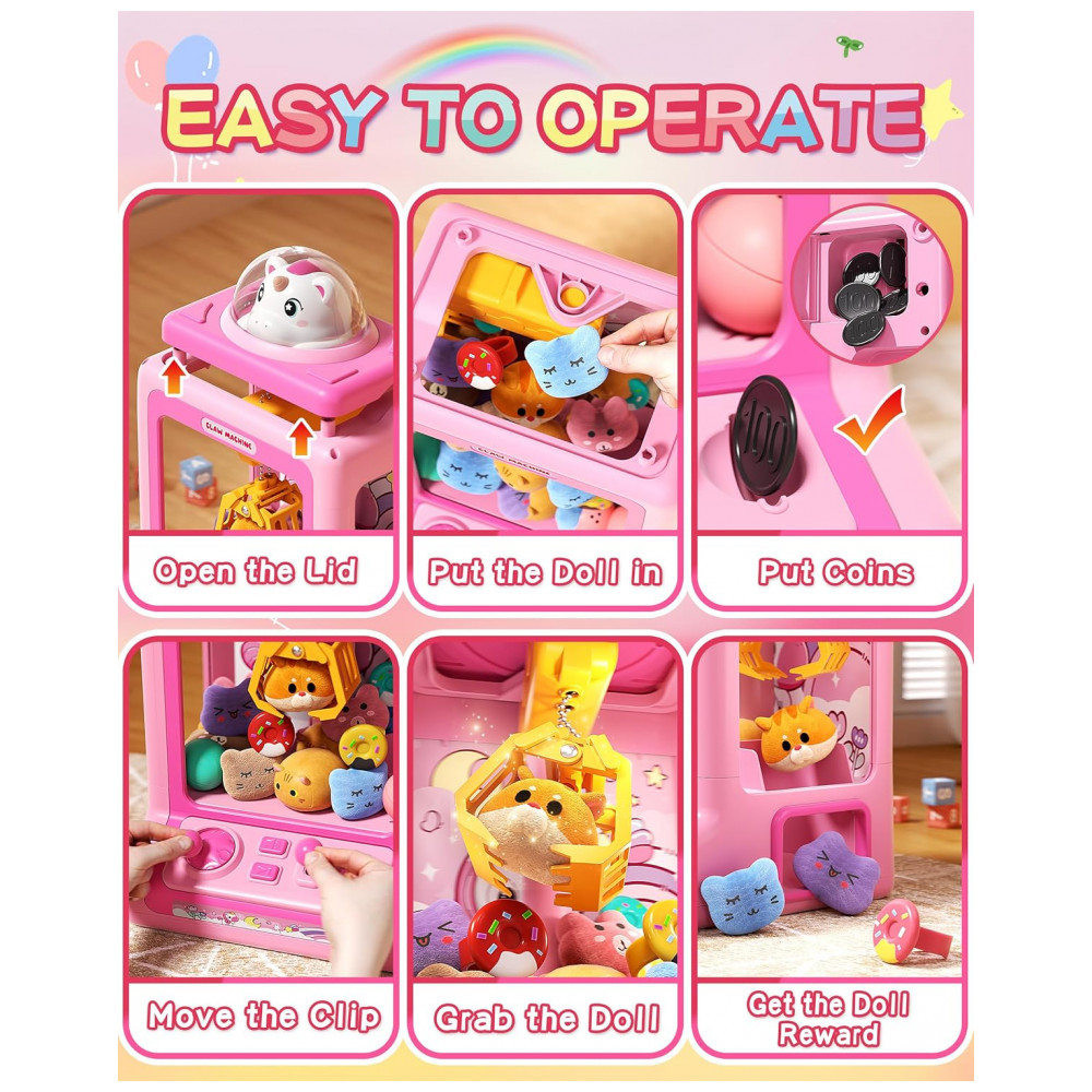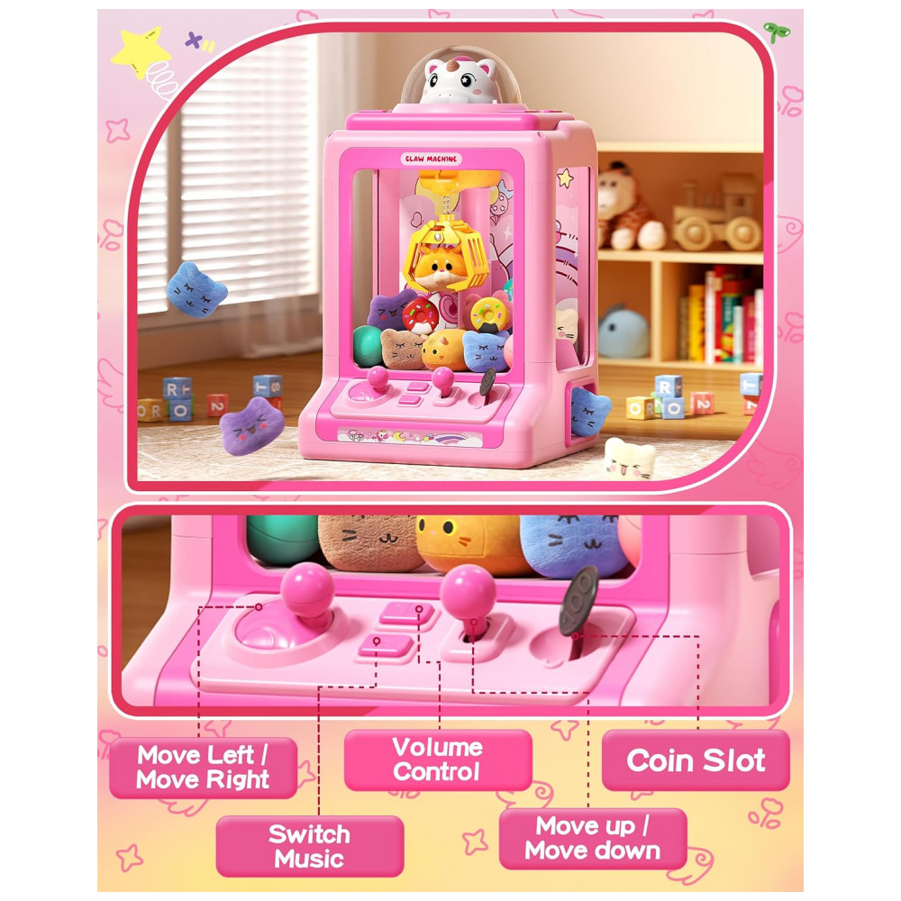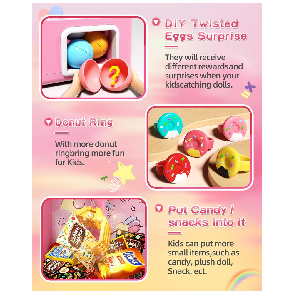 Experiência de Jogo Emocionante – A Máquina de Garra Rosa da Jovow oferece diversão personalizada para crianças, permitindo preencher a máquina com mini pelúcias, doces, pequenos brinquedos ou surpresas variadas. Perfeita para festas, aniversários ou encontros familiares, o sistema de prêmios personalizável transforma cada jogada em uma experiência única e envolvente, ideal para crianças de 3 a 8 anos.