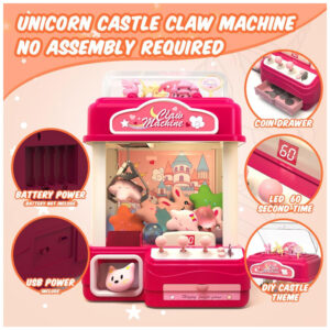 A Máquina de Garra Skirfy Castle Unicorn 15” transforma qualquer ambiente em um mini arcade, oferecendo diversão para crianças e adultos. Projetada para estimular coordenação motora e criatividade, permite controlar a garra em todas as direções com três joysticks, tornando a experiência de pegar brinquedos e doces emocionante e realista. Com luzes vibrantes, música e efeitos sonoros, cria uma atmosfera de feira irresistível. Funciona com 5 pilhas AA ou cabo USB, garantindo entretenimento contínuo. O conjunto inclui ovos de surpresa, bonecas, brinquedos macios e moedas, ideal para crianças de 8 a 13 anos. Presente perfeito para aniversários, festas ou datas comemorativas, combinando diversão e estilo em um único brinquedo.