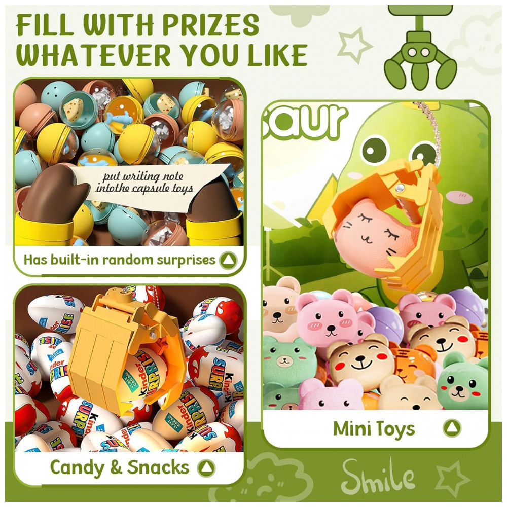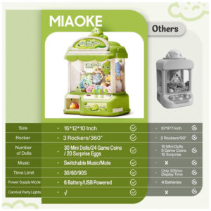 Experiência de Brincadeira Empolgante – A Máquina de Garra Verde da MIAOKE chega prontinha para alegrar o ambiente infantil com design dinâmico e controles realistas. Com amplo compartimento interno que permite preenchimento com mini pelúcias, doces, cápsulas-surpresa ou pequenos brindes, este brinquedo permite criar suas próprias regras de jogo e adaptá‑lo tanto para festas quanto para brincadeiras diárias. O conjunto inclui 30 brinquedos aleatórios, 20 ovos‑surpresa e 24 moedas de jogo, oferecendo variedade e interação desde o primeiro uso.