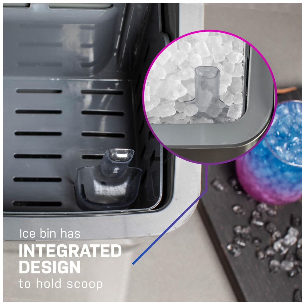 Com uma capacidade superior, a máquina de fazer gelo produz 15,42 quilos de gelo por dia e pode produzir sua primeira fornada em apenas 10 minutos. Nunca fique sem pepitas de gelo com uma máquina de grande capacidade que aguenta até 3 libras por vez. Para maior comodidade, há a opção de adquirir um tanque de água lateral recarregável, vendido separadamente, que comporta mais de 1,90 litros de água doce, permitindo que você sempre tenha pepitas de gelo à mão.
