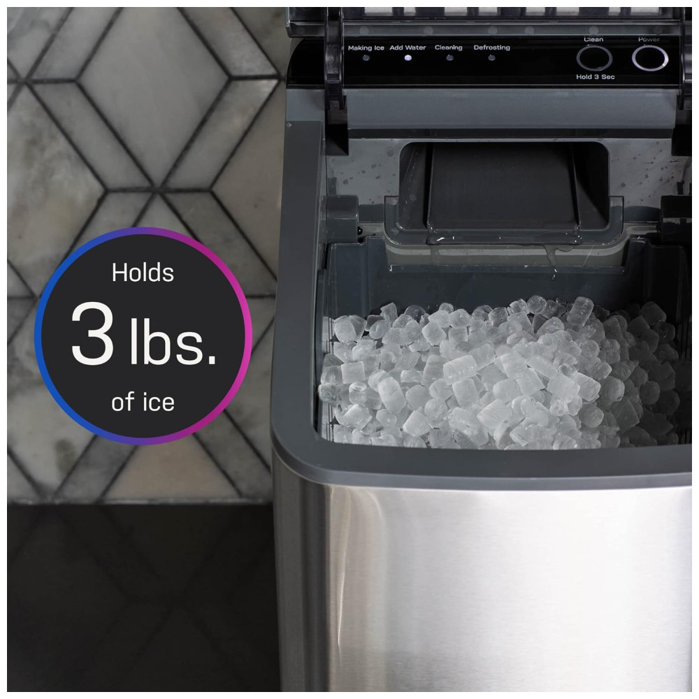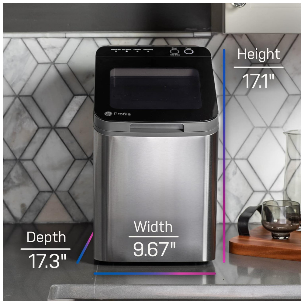 Máquina de gelo 154 kg por Dia com Acabamento em Aço Inoxidável 110V 360W GE PROFILE Preta e Prata