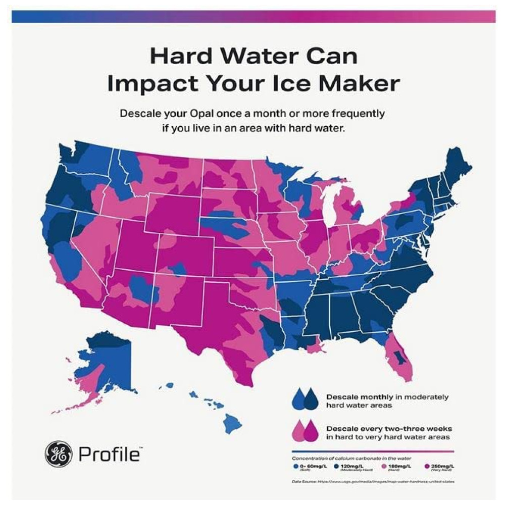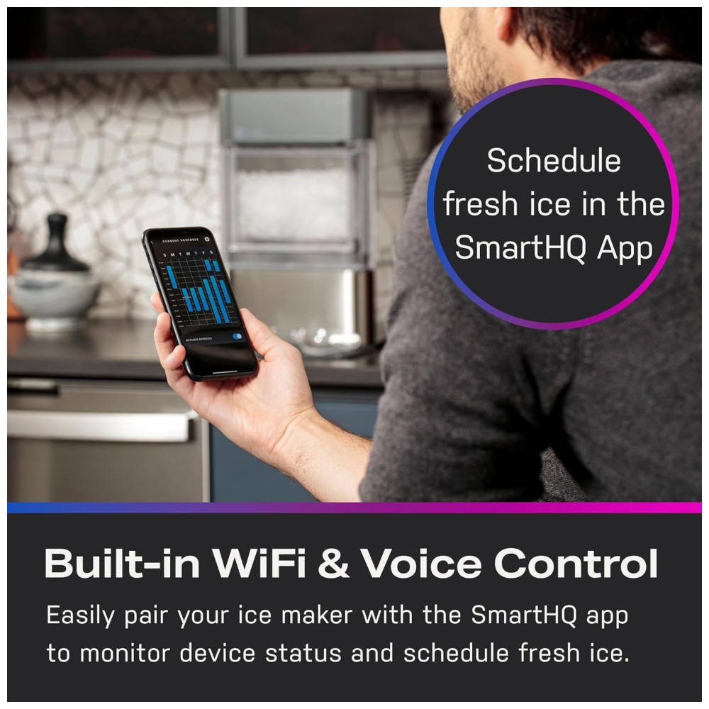 O aparelho possui WiFi incorporado e controle de voz por meio de Alexa e Google, além de um aplicativo SmartHQ para monitorar o status do dispositivo e agendar gelo fresco. A máquina também possui um sistema de limpeza avançado que ajuda a higienizar e descalcificar quando usado regularmente, mantendo o sabor do gelo fresco e o melhor desempenho da máquina. A tela LED intuitiva permite controle de precisão com o toque de uma tela, e o design inovador evita grumos e vazamentos ao recircular o derretido gelo para o reservatório de água.
