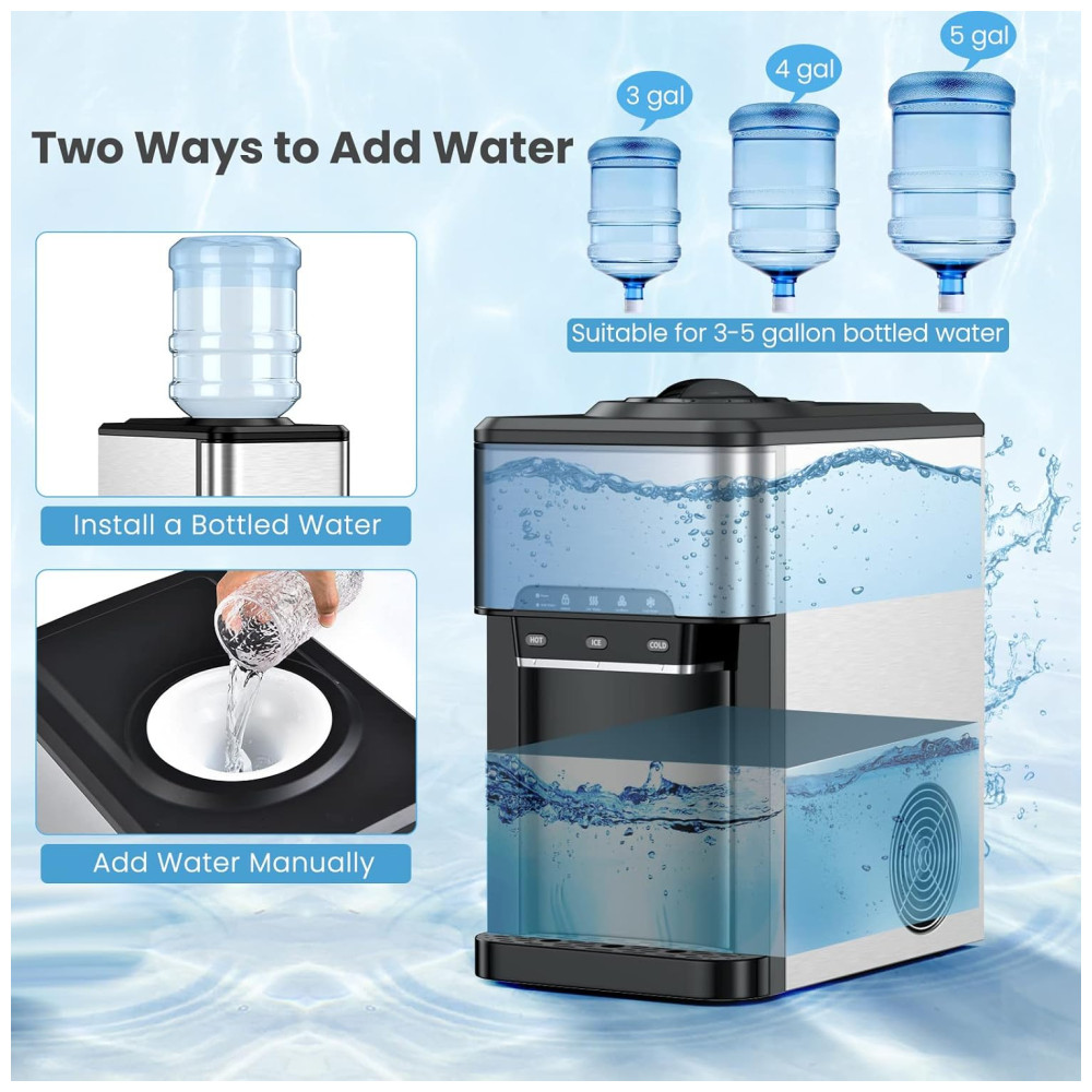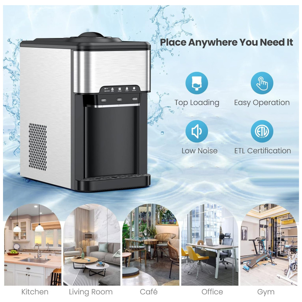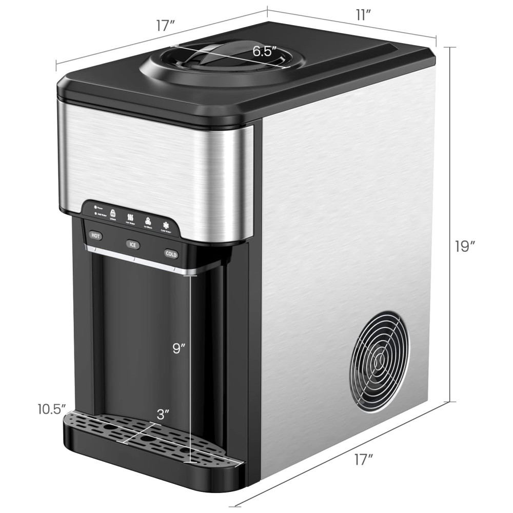 Máquina de Gelo 3 em 1 Produz 21 kg em 24H com Carregamento Superior e Dispensador de Água Quente ou Fria 110V PETSITE Prata