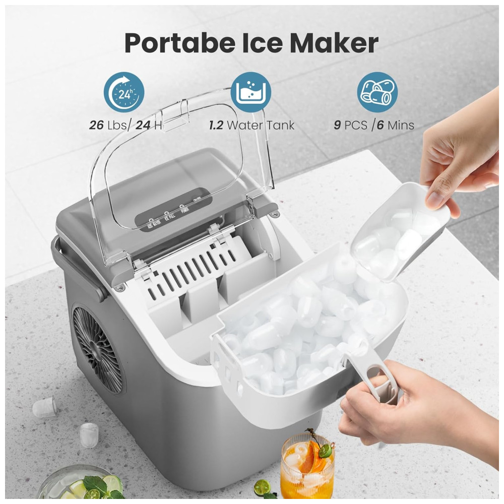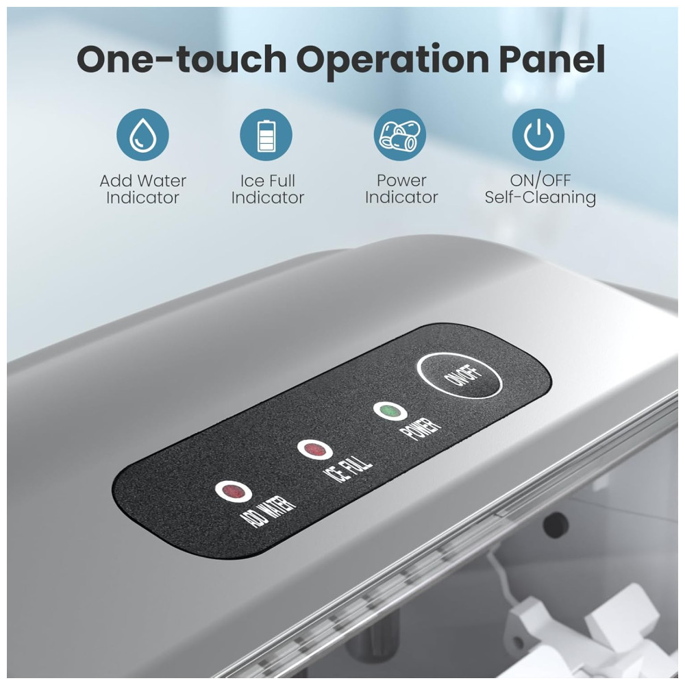 Produção de gelo eficiente Equipado com o compressor de alta qualidade R600a, este fabricante de gelo de mesa pode produzir aproximadamente 9 cubos de gelo em 6 13 minutos e é capaz de produzir aproximadamente 11,8 kg de cubos de gelo em 24 horas. Com esta máquina de gelo de bancada de baixo ruído, você pode obter o gelo fresco sempre que quiser.
