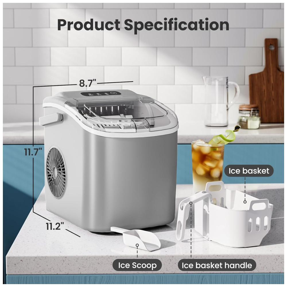 Máquina de Gelo até 11 kg em 24H Portátil 110V AGLUCKY R600a Cinza