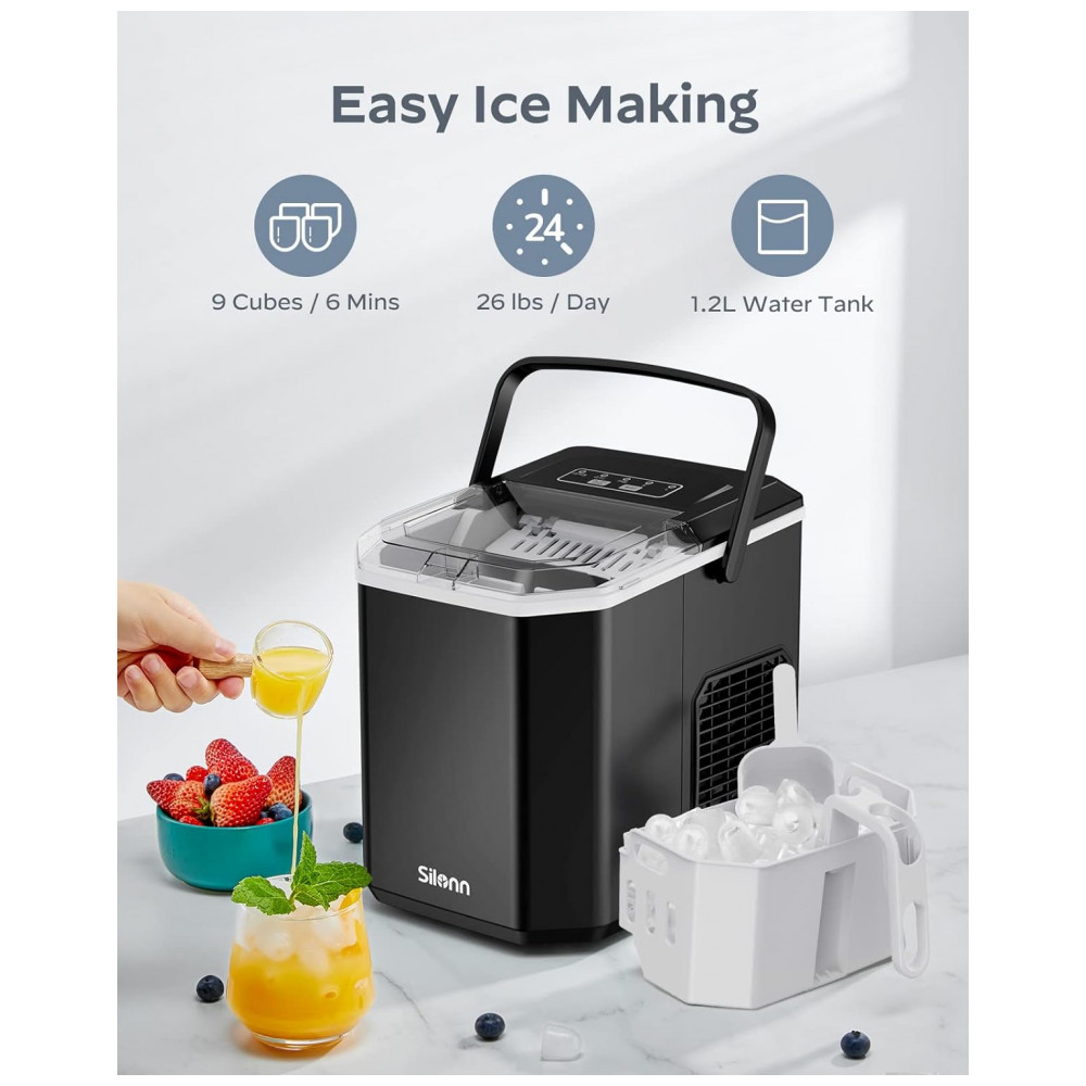 Máquina de Gelo até 11 kg em 24H Portátil com Alça 110V Silonn SLIM21 Preta