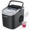 PROJETO PORTÁTIL CONVENIENTE A alça robusta facilita o transporte da máquina de gelo, enquanto a colher se conecta à cesta para zenamento conveniente. Pesando apenas 6,2 kg, você pode levar esta máquina compacta para qualquer sala ou evento com facilidade.