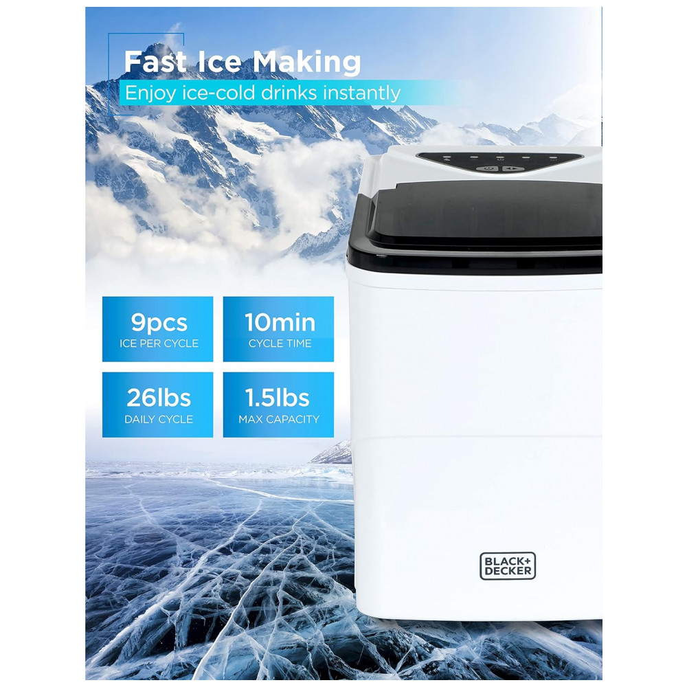 26 libras de gelo a cada 24 horas Este incrível fabricante de gelo de bancada BLACKDECKER produz impressionantes 26 libras 11,79 kg de gelo a cada 24 horas. Isso significa que a cada 6 12 minutos você tem 9 cubos grandes ou pequenos prontos para refrescar deliciosas bebidas e coquetéis.