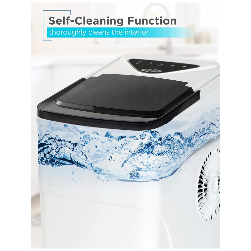 AUTO LIMPEZA Manter sua nova máquina de fazer gelo 22, x 31, x 32 centimetros nunca foi tão fácil Com o pressionar de um botão, esta máquina de gelo se lava completamente, para que você não precise fazer isso. Total comodidade, verdadeiramente higiênico