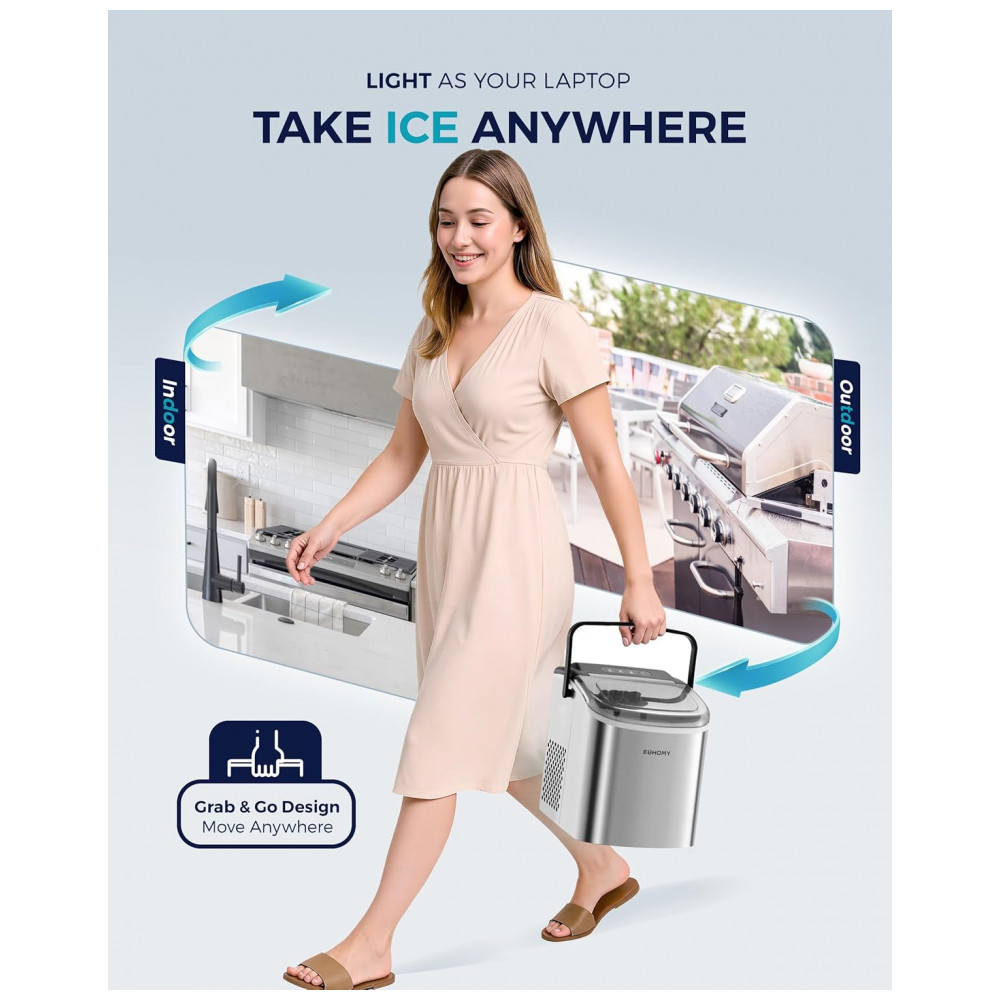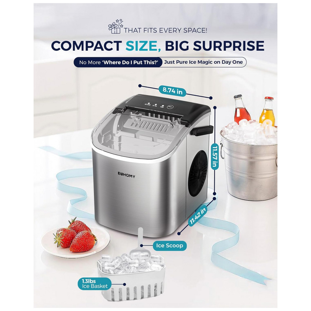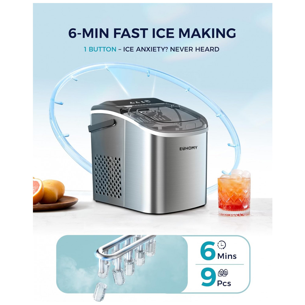 Máquina de Gelo até 11 kg em 24H Portátil com Limpeza Automática 110V 170W EUHOMY Prata