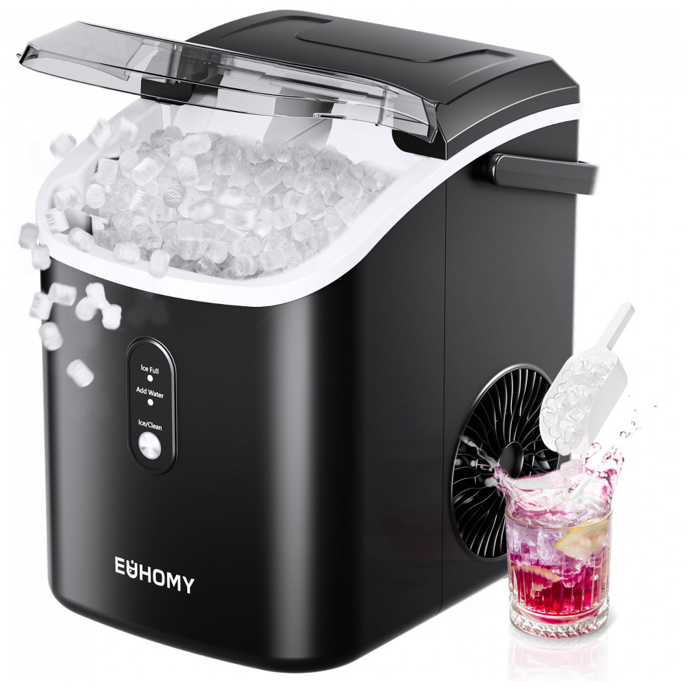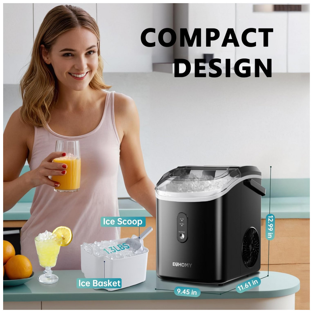 Máquina de Gelo até 14 kg em 24H Portátil com Alça e Colher 110V EUHOMY Preta