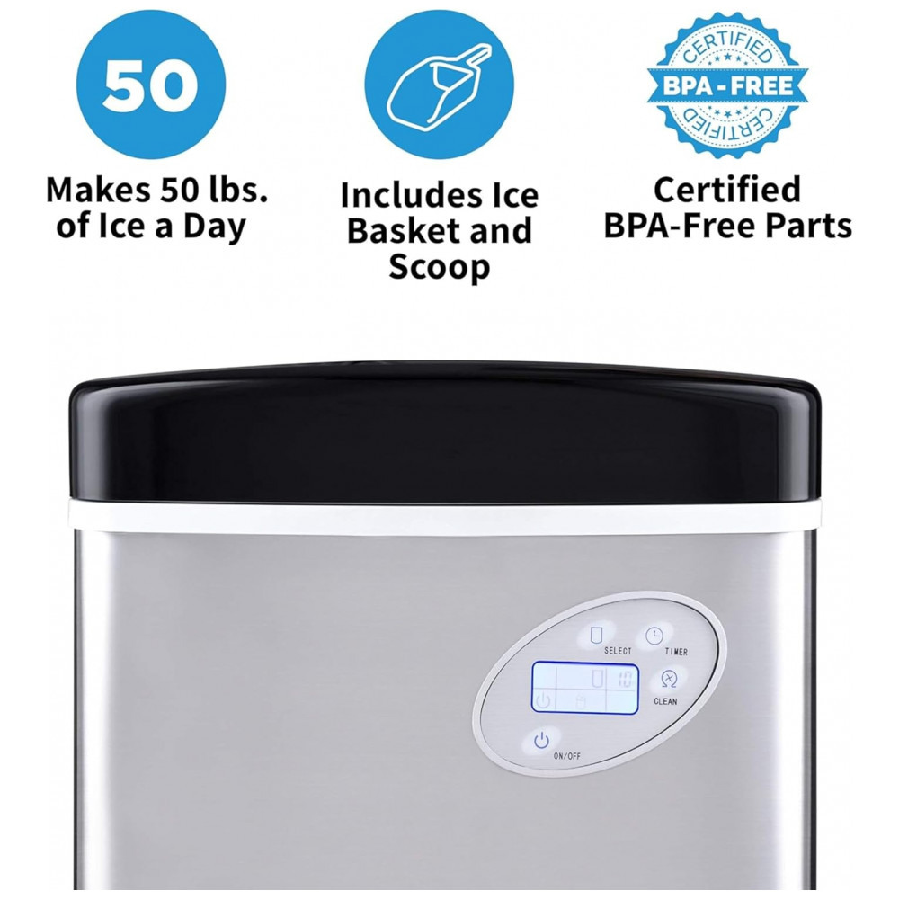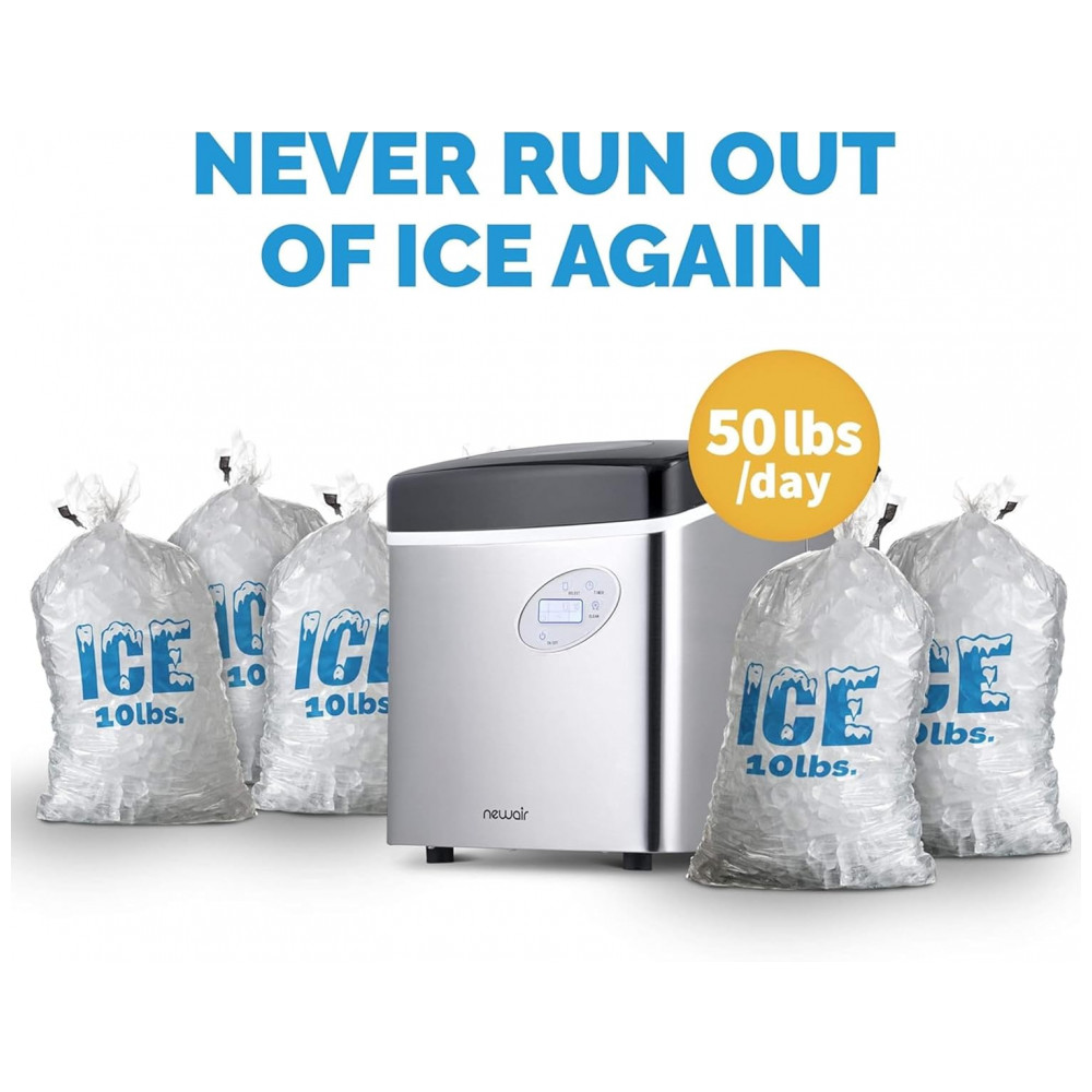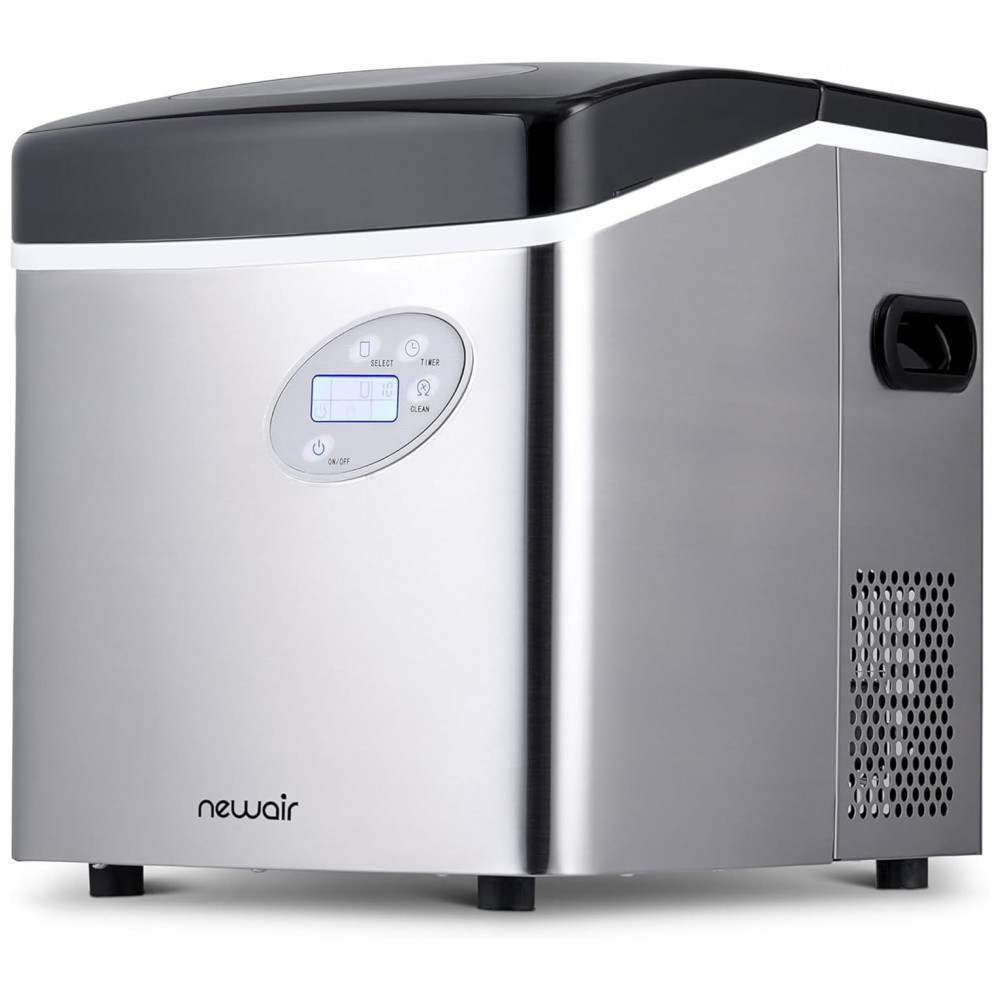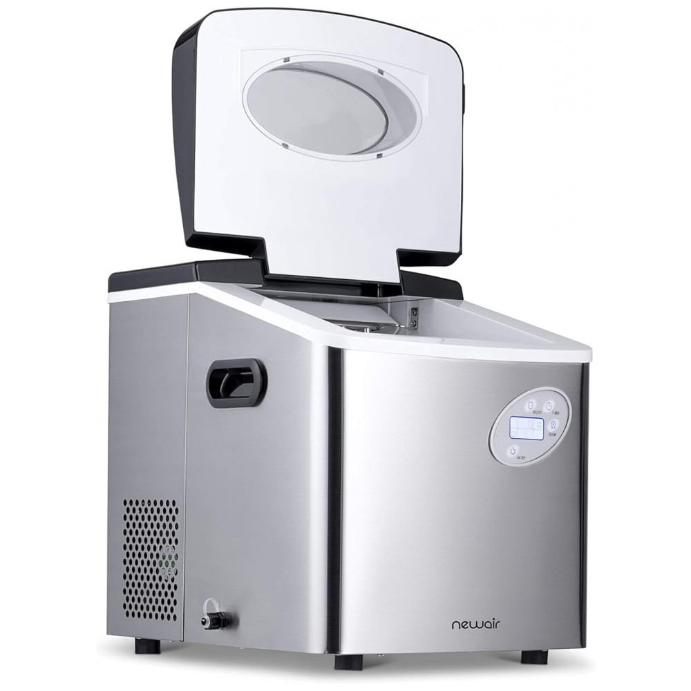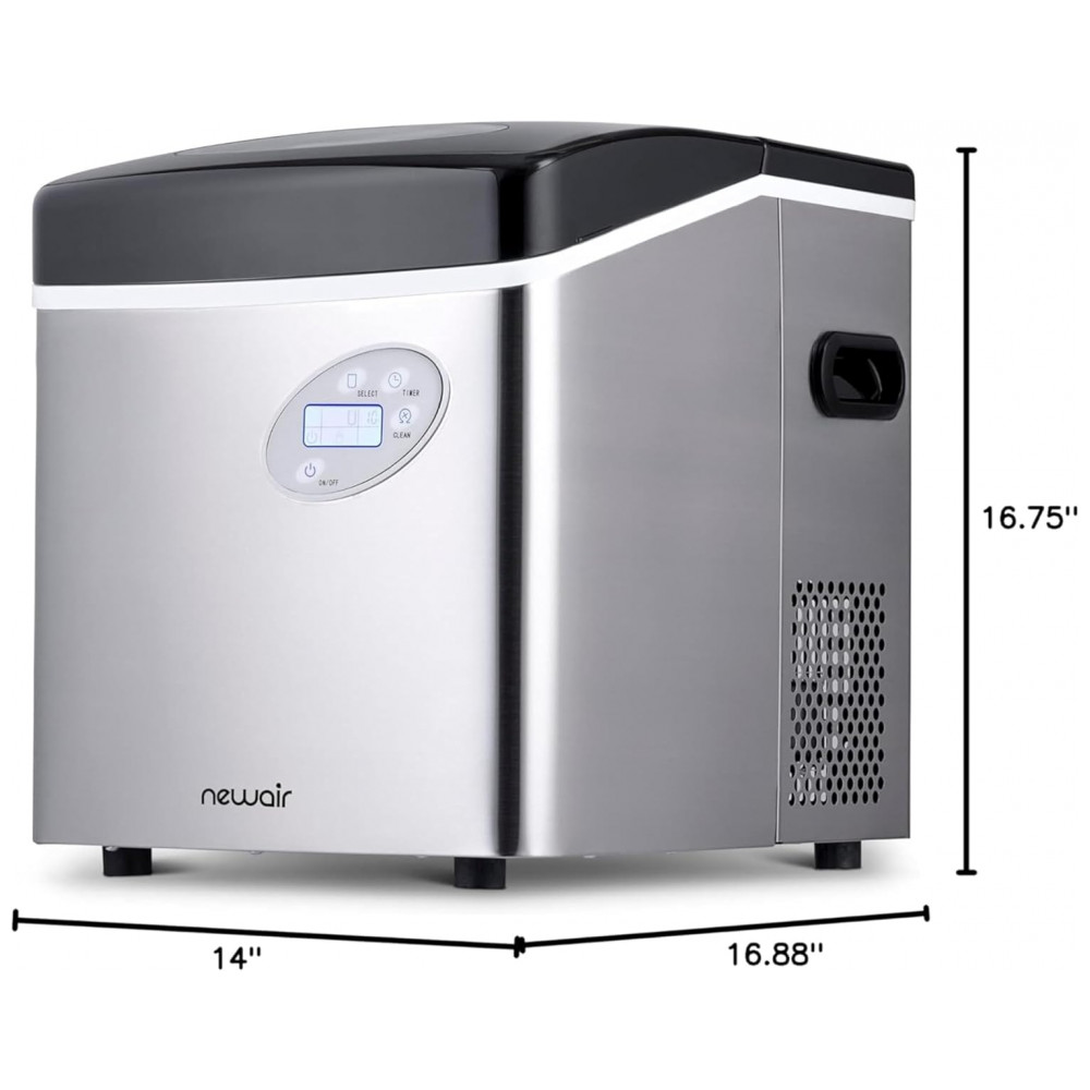 Máquina de Gelo até 22 kg em 24H Portátil com Autolimpeza e Silenciosa 110V NewAir AI215SS Preto e Prata