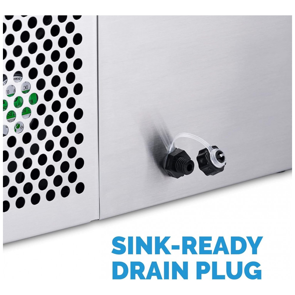 FUNÇÃO DE AUTOLIMPEZA Manter sua máquina de fazer gelo livre de mofo e bolor é muito fácil, graças ao sistema de autolimpeza. Esta máquina de fazer gelo também é feita inteiramente de plástico livre de BPA, então você não precisa se preocupar com produtos químicos nocivos em seu gelo.