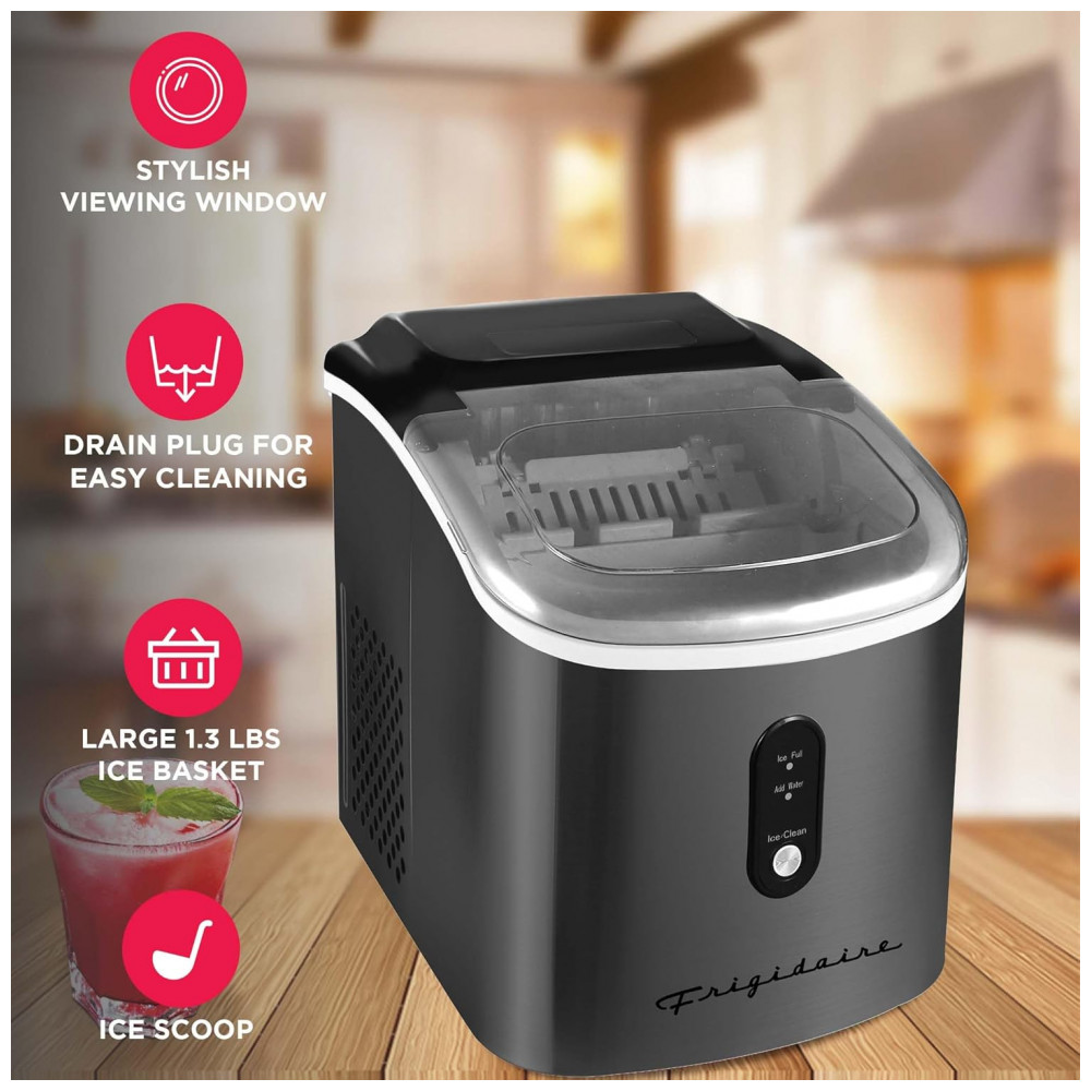 Máquina de Gelo Automática Portátil até 11 kg de Gelo em 24h 110v FRIGIDAIRE EFIC103 SSBLACK SC SELF CLEANING Preto