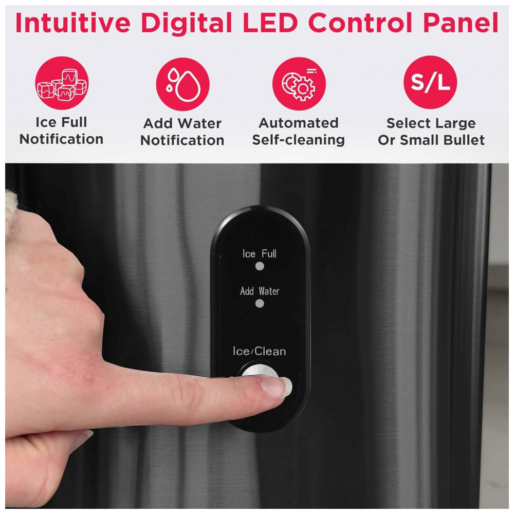 EFICIENTE E FÁCIL DE USAR Em menos de 6 minutos, você pode fazer cubos de gelo perfeitamente quadrados e zenar até 1 kg. de uma vez. Os controles eletrônicos simples e fáceis de usar farão com que você faça cubos de gelo rapidamente.