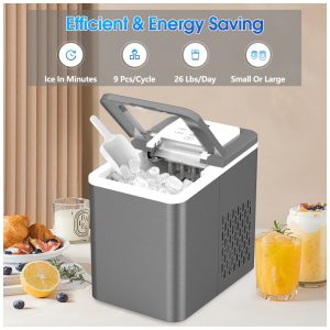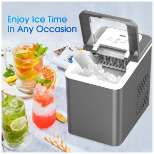 Fazer Gelo De Dar Água na Boca Quer preparar suas bebidas, como pode viver sem cubos de gelo Apenas 8 minutos para obter cubos de gelo em forma de bala 9PCS, 12 kg em 24 horas. Delicioso, fresco e saudável. Seja para conservar bebidas, vinhos ou alimentos, sempre poderá ajudá lo. Uma janela superior transparente permite que o usuário visualize o processo de fabricação. A máquina de fazer gelo de mesa VECYS irá trazer uma nova experiência de cubos de gelo.