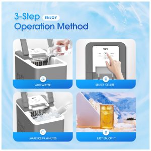 Tecnologia inovadora Sistema de controle simples, mas excelente, fácil de operar. Fazendo cubos de gelo automaticamente após ligar, sem necessidade de babá. O Internal possui o sensor infravermelho mais avançado para evitar o transbordamento de cubos de gelo e a luz indicadora exclusiva para lembrar o usuário de reabastecer a água a tempo. Além disso, a máquina de gelo VECYS possui função de autolimpeza, sendo mais conveniente e sem preocupações