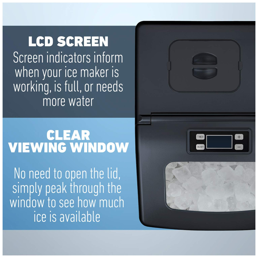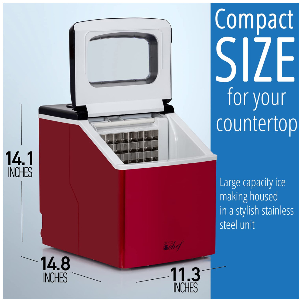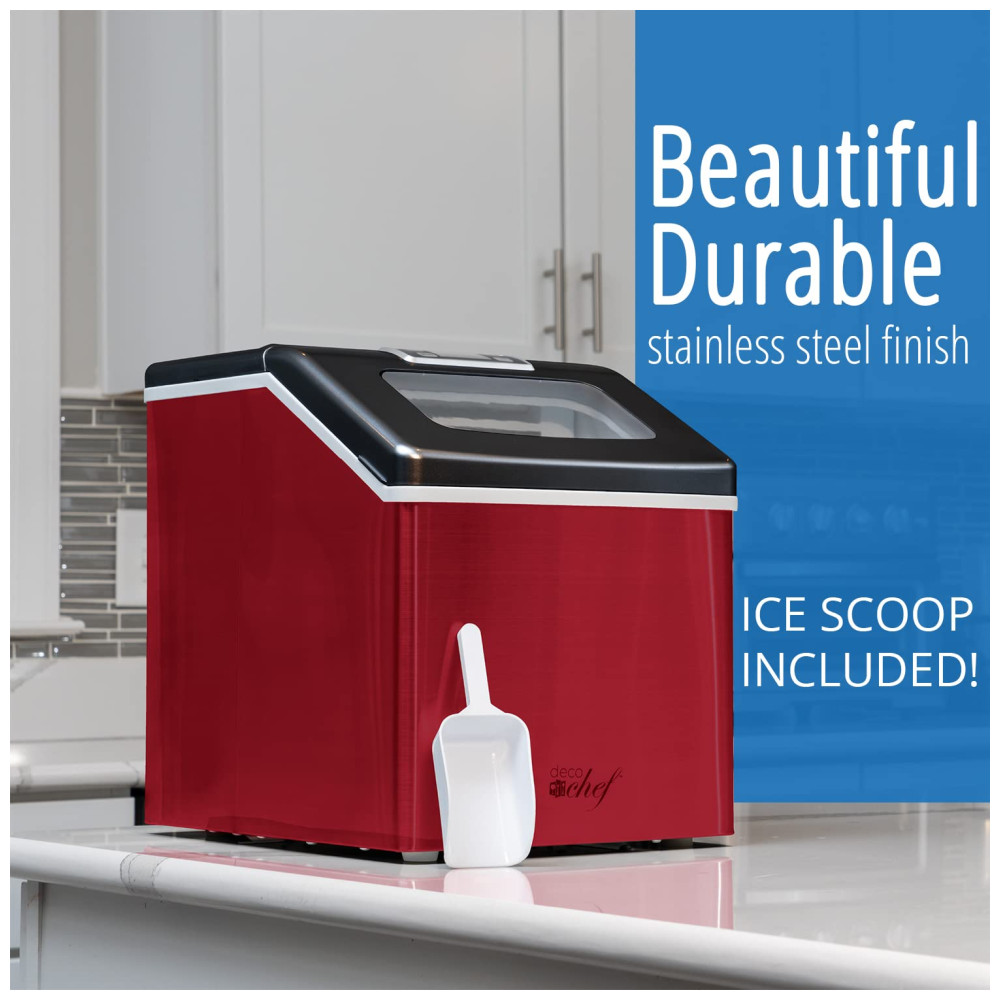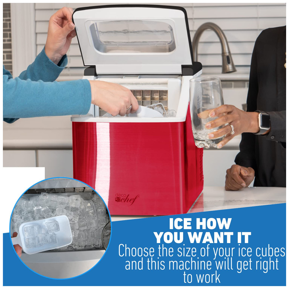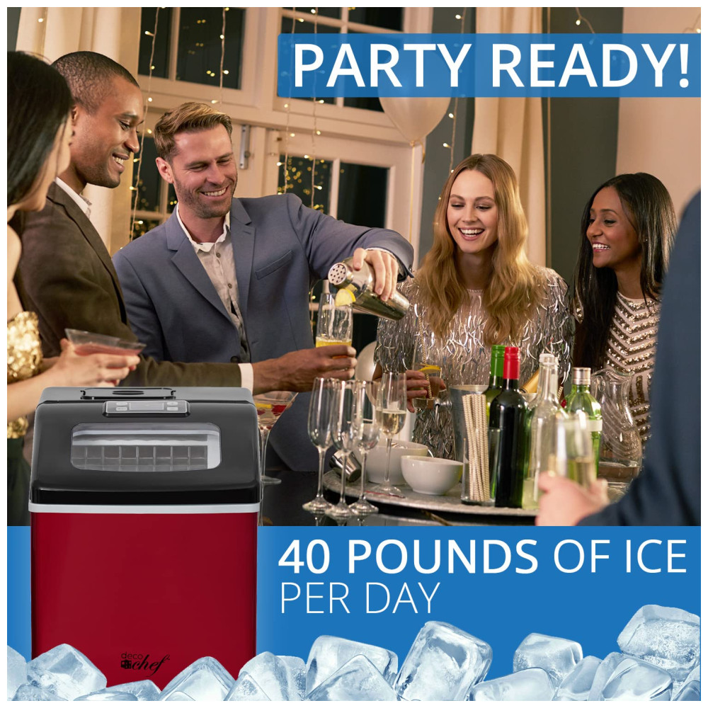 FABRICAÇÃO DE GELO MODERNA Não deixe sua próxima bebida à beira da piscina ou uísque da noite ficar sem gelo Para festas, uso diário da família, camping RV, salas de descanso no escritório e muito mais O fabricante de gelo Deco Chef 40LB criará gelo consistente, claro e limpo de maneira confiável é hora de descartar as bandejas