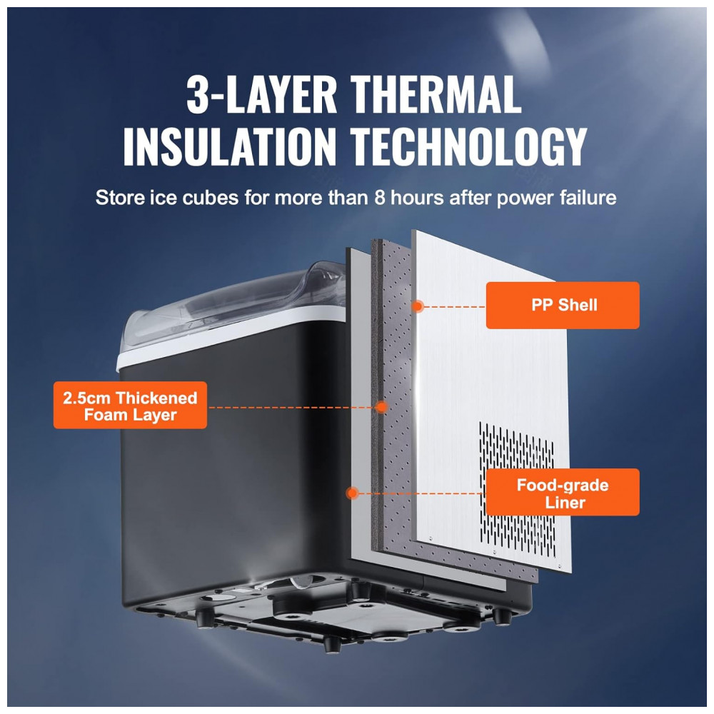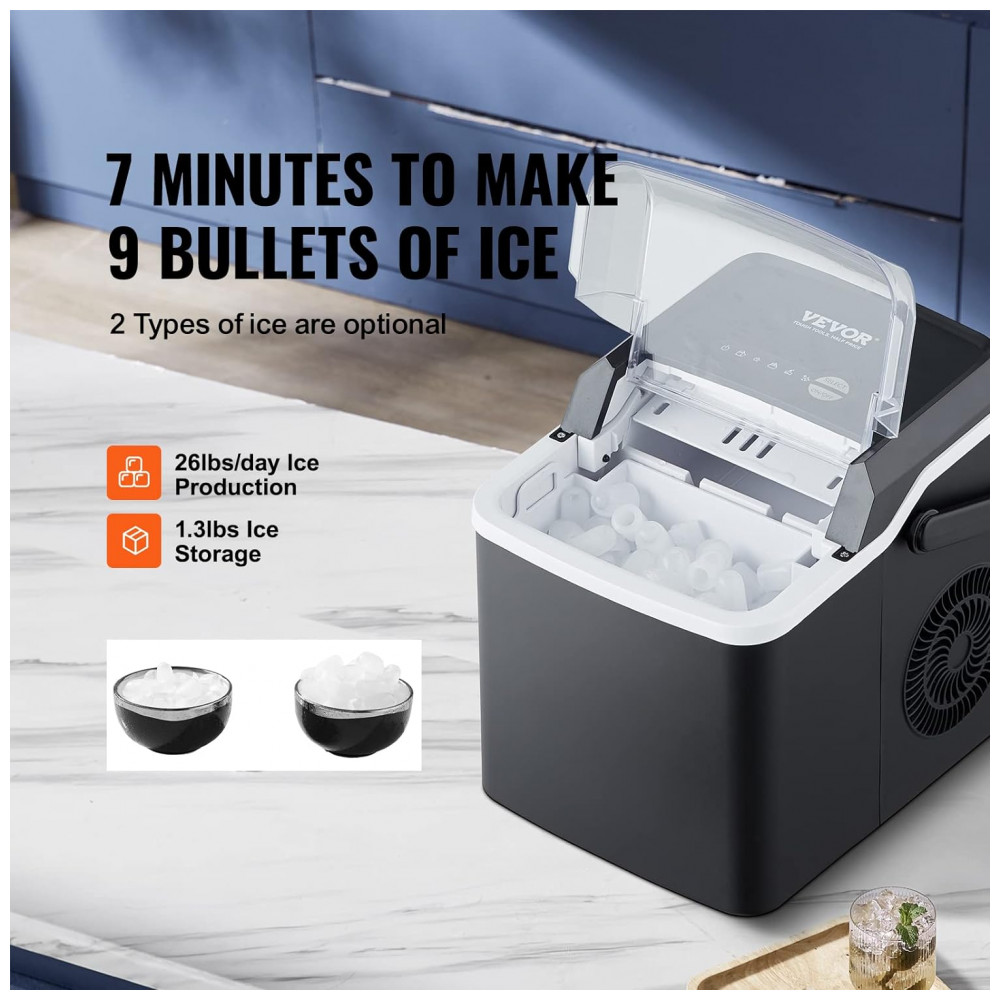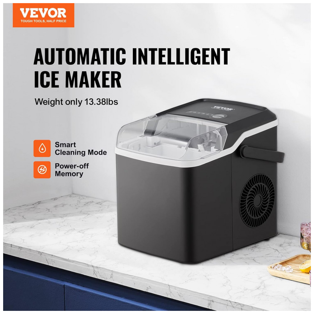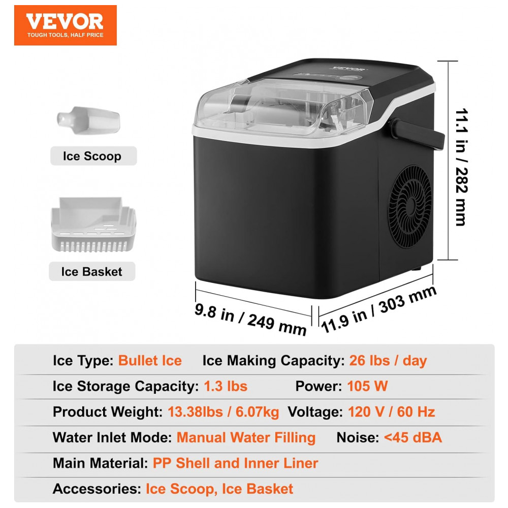 Máquina de Gelo com Capacidade para 11 kg em 24H Colher e Cesta de Gelo 110V VEVOR Preta