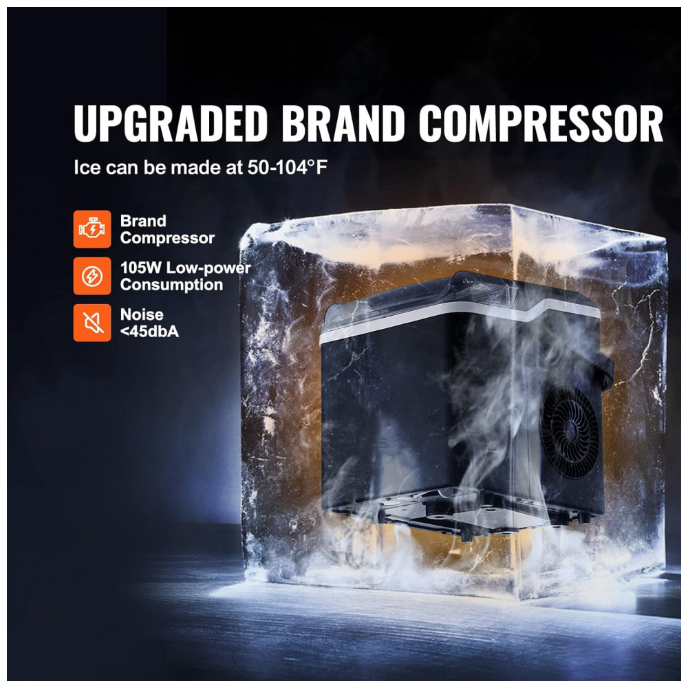 Fabricação eficiente de gelo em bala: Esta máquina de fazer gelo de bancada ofereceria com eficiência 11 kg de cubos de gelo em bala em 24 horas e apenas 5 8 minutos para 9 cubos de gelo em bala, que atendem à demanda de toda a sua família ou festas. cubos a partir de agora, nunca mais corra para as lojas para comprar gelo.