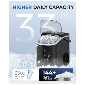 Grande capacidade e fabricação rápida de gelo Obtenha o primeiro cubo de gelo com pepitas em apenas 5 minutos com esta máquina Delicie se com 207mL de cubos macios e crocantes em 20 minutos. Ele pode produzir 14,9 kg de gelo mastigável por dia, garantindo que você e sua família tenham um suprimento constante de gelo o dia todo.