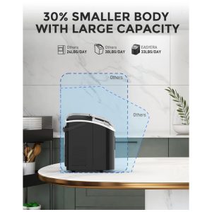 Compacidade compatível com RV Compacta, esta máquina de fazer gelo com pepitas portátil é ideal para seu RV ou reuniões familiares. EASYERA apresenta uma mini máquina de gelo de bancada 50 menor que a geração anterior, aprimorando suas experiências na cozinha, camping, escritório e festas.