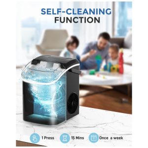 Autolimpeza sem esforço Prolongue a vida útil da sua máquina de fazer gelo com o recurso de autolimpeza automática. Basta pressionar e segurar o botão por 5 segundos para ativar a função de limpeza. Demora aproximadamente 15 minutos e depois basta desconectar o tampão inferior para drenar o esgoto por gravidade. Aproveite para usá lo novamente
