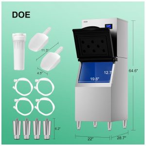 Produza gelo de forma eficiente com a máquina de gelo comercial COTLIN, capaz de produzir até 450 lbs de gelo por dia e armazenar 159 kg. A espessura do gelo é ajustável para atender diferentes necessidades, e cada ciclo dura apenas 515 minutos. Equipada com três ventiladores de alto desempenho no topo, melhora a dissipação de calor para uma produção de gelo mais rápida e eficiente. Controle inteligente com painel LCD intuitivo, função de limpeza automática, detecção de falhas e corpo resistente de aço inoxidável escovado, essa máquina é ideal para ambientes comerciais com alta demanda de gelo. Além disso, a instalação é simples, inclui filtro de água, suporta reserva de gelo e garante qualidade superior.