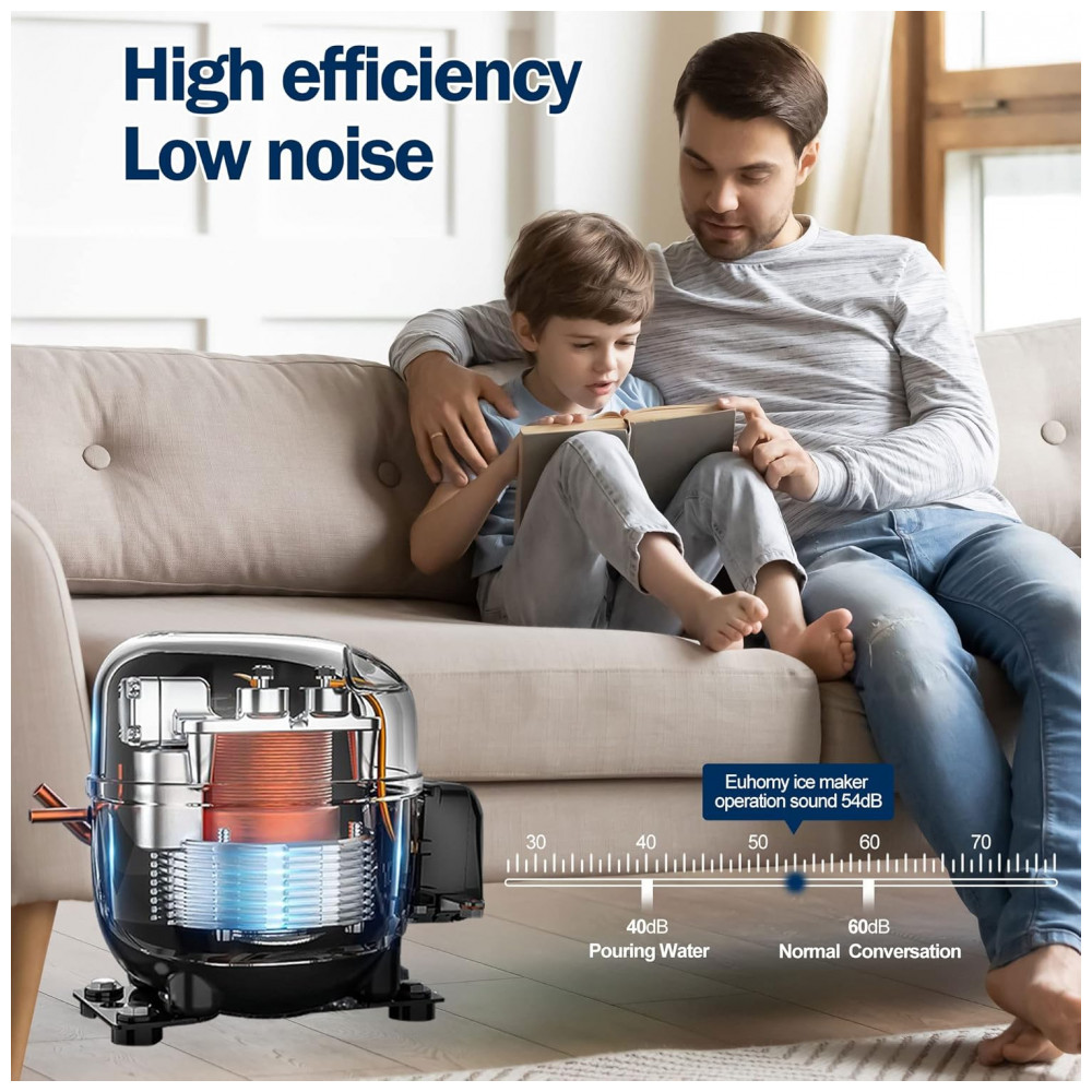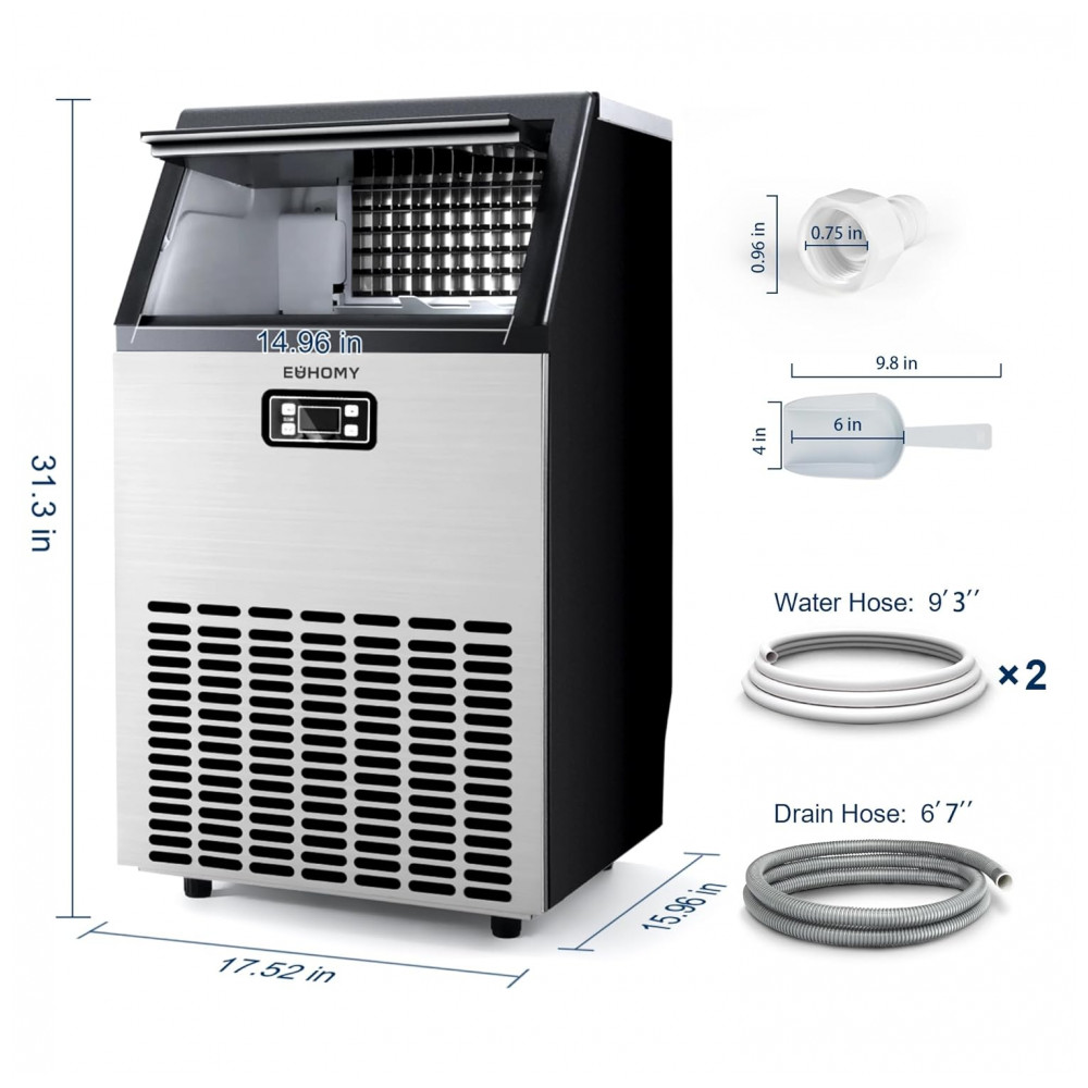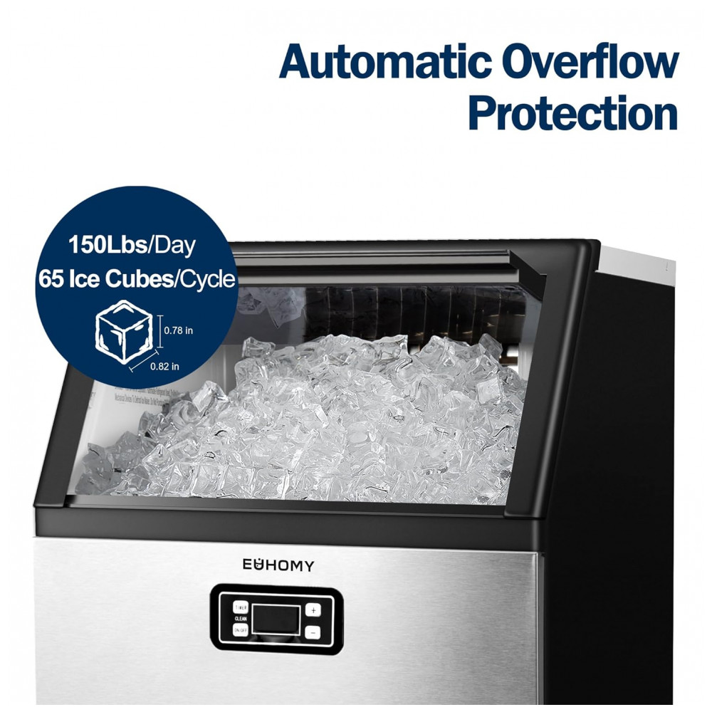 Máquina de Gelo Comercial EUHOMY 150 lbs/dia Bin 33 lbs Aço Inoxidável Sob Balcão Autolimpeza ETL 115V