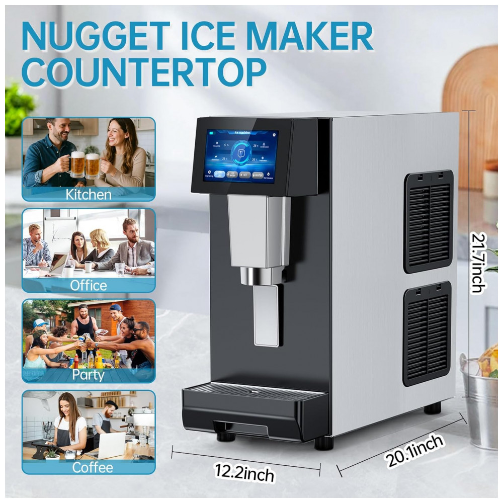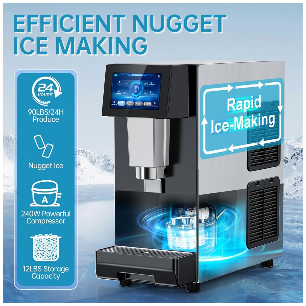 Máquina de Gelo em Pedaços Commercial Nugget Hothope 45 kg/24h 54 kg Armazenamento 3-em-1 com Dispenser de Gelo e Água Aço Inox IM-S2-T 110V