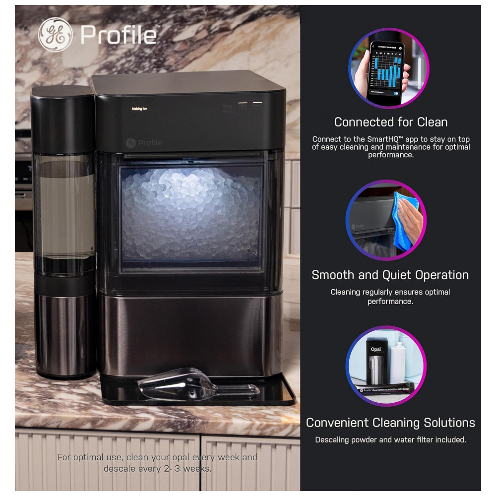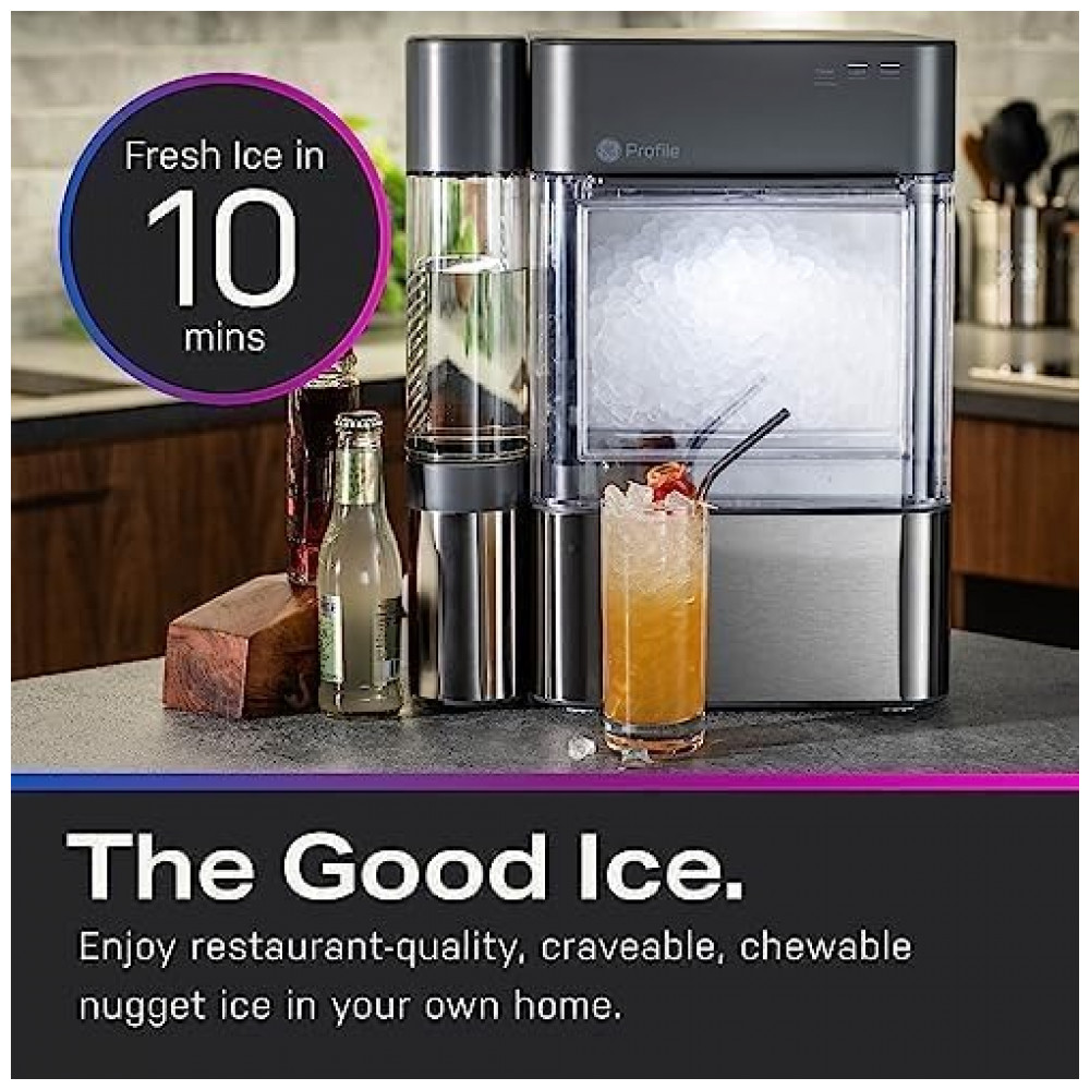 Máquina de Gelo em Pedaços GE Profile Opal 2.0 XL Tanque 38L WiFi Inteligente 17kg/24H XPIOX3BCBT Aço Inox Preto 120V