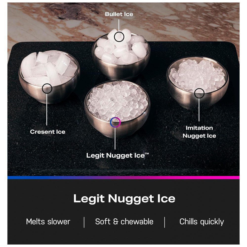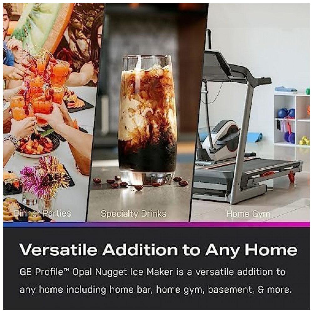 A Máquina de Gelo em Pedaços GE Profile Opal 2.0 XL XPIOXSYMO produz até 38 libras (17 kg) de gelo por dia, com capacidade de 1,6 libras (0,7 kg) por hora e primeiros cubos em até 10 minutos. Equipada com tanque de água de 3,8 litros destacável, opera sem conexão externa de água, permitindo recarga e manutenção simplificada. O modelo countertop em aço inoxidável utiliza compressor com refrigerante R600a para formação de gelo compactado em flocos, com gaveta removível de 3 libras (1,4 kg).