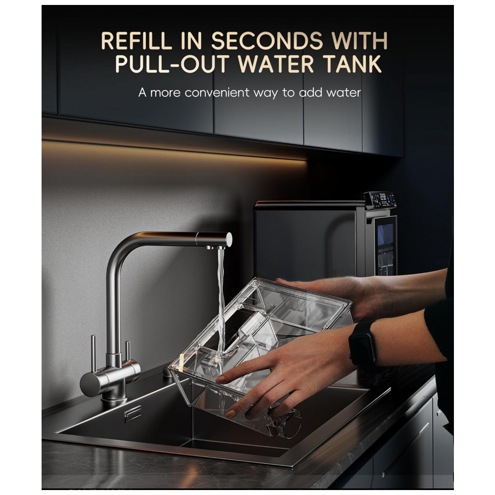 Painel de exibição IceLumix full-color com ícones vibrantes, TDS e temperatura em tempo real