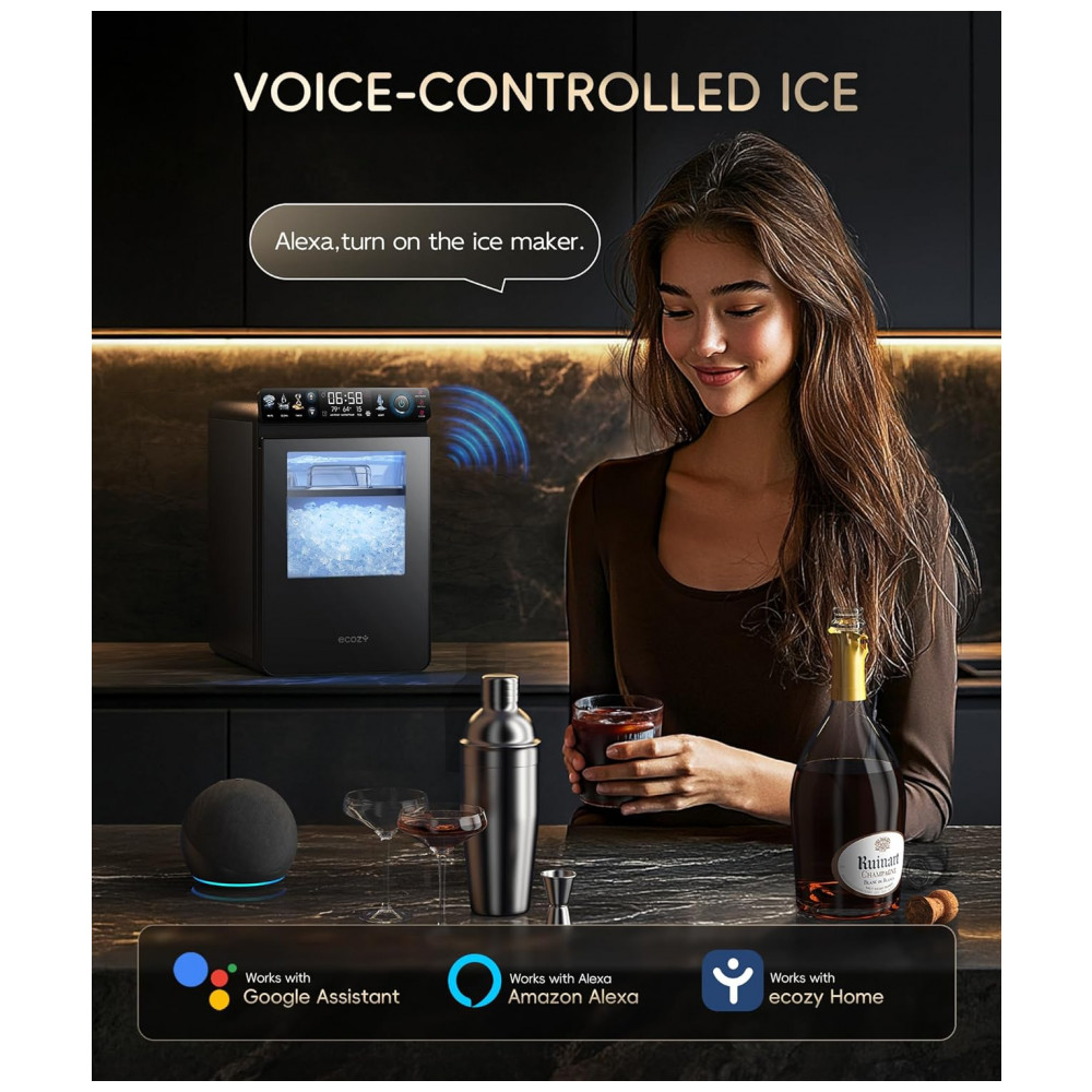 Máquina de Gelo Nugget Ecosy Preto com Painel Colorido Controle APP 20 kg/dia Autolimpeza IM-NS451B 115V