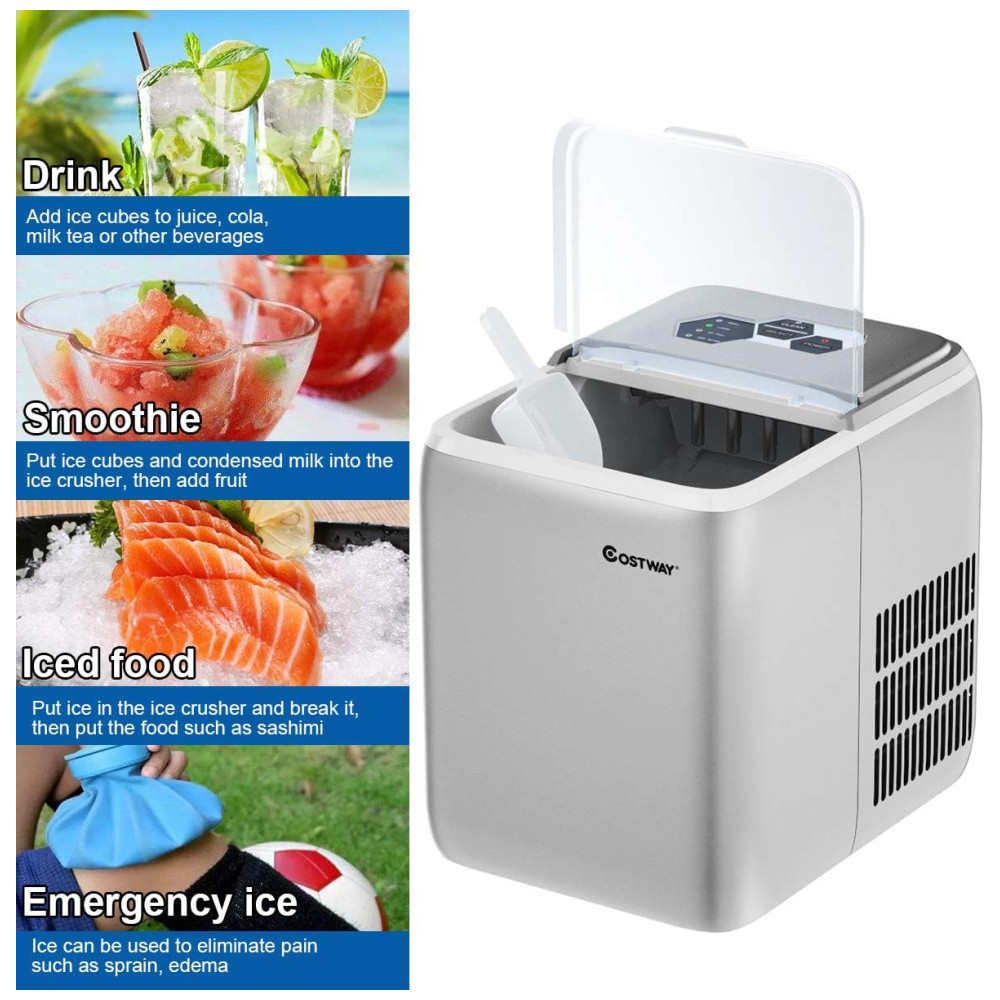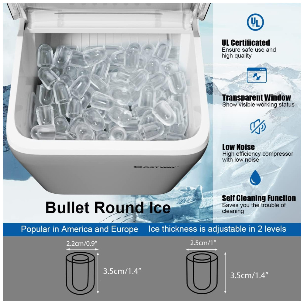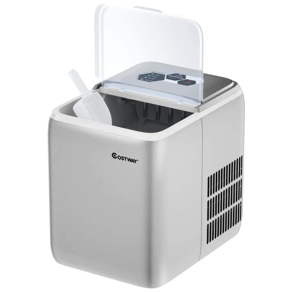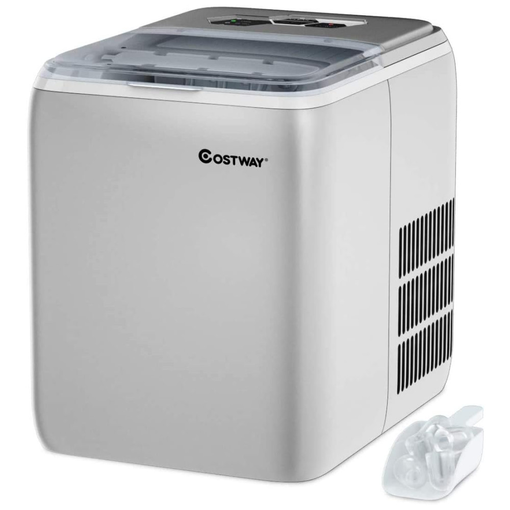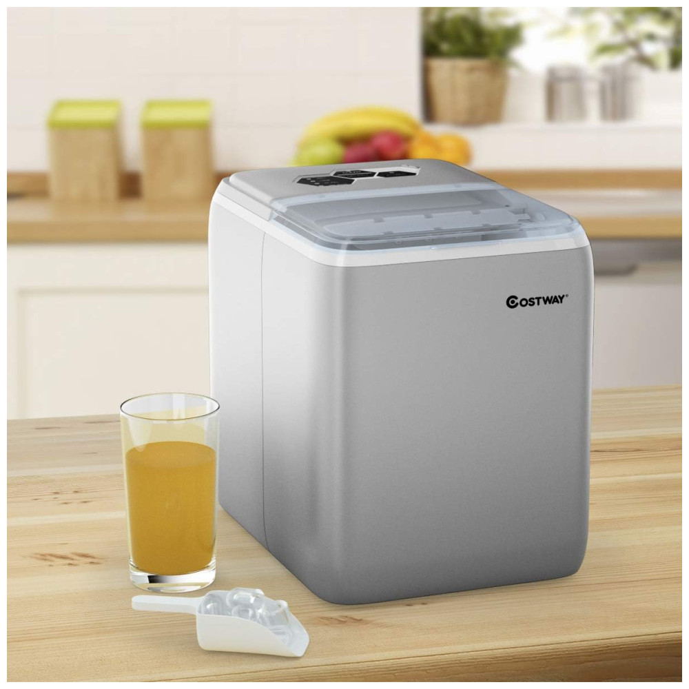 Máquina de Gelo Portátil Autolimpante Produz 20kg Dia 12 Cubos 8min 110v COSTWAY Cinza