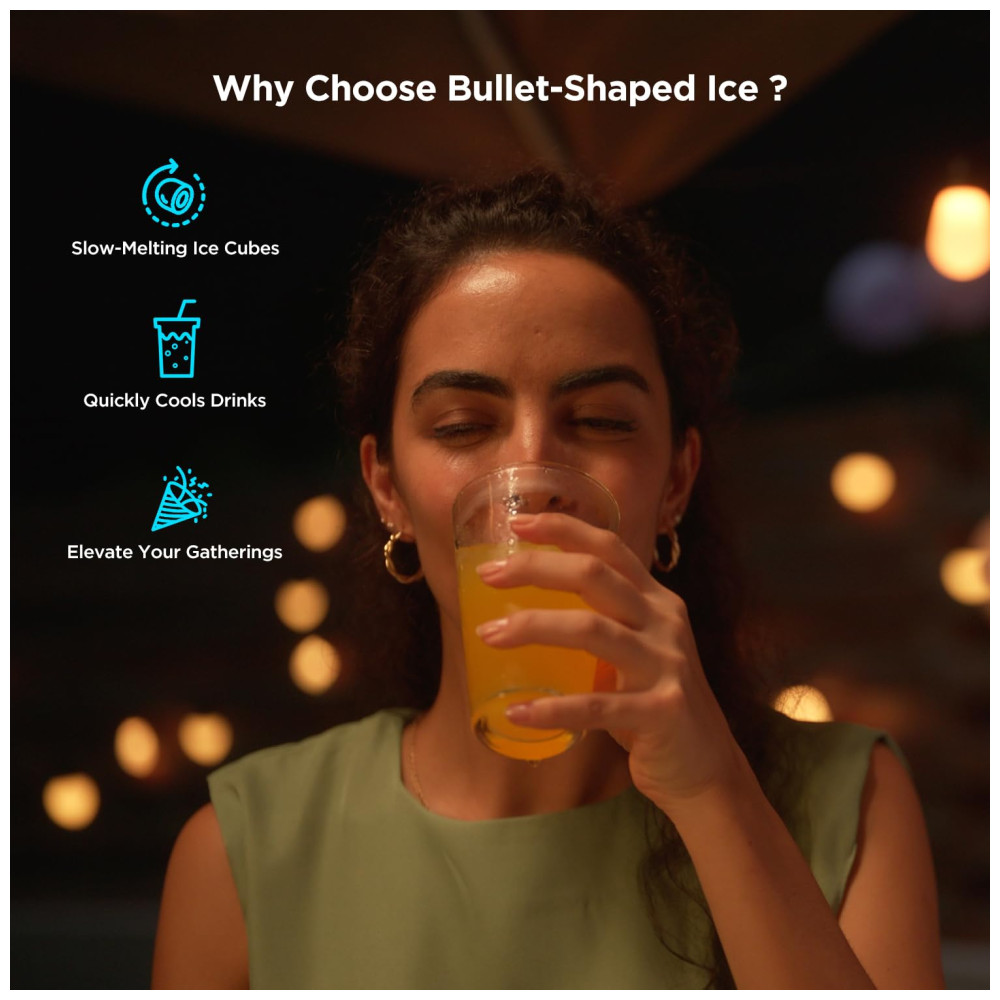 Produção Rápida de Gelo: Com a GoveeLife Smart Countertop Ice Maker, você terá 9 cubos de gelo em forma de bala prontos em apenas 6 minutos. O tanque de água de 2L permite a produção de até 12 kg de gelo a cada 24 horas, garantindo gelo disponível quando e como você precisar.