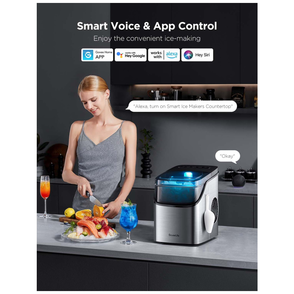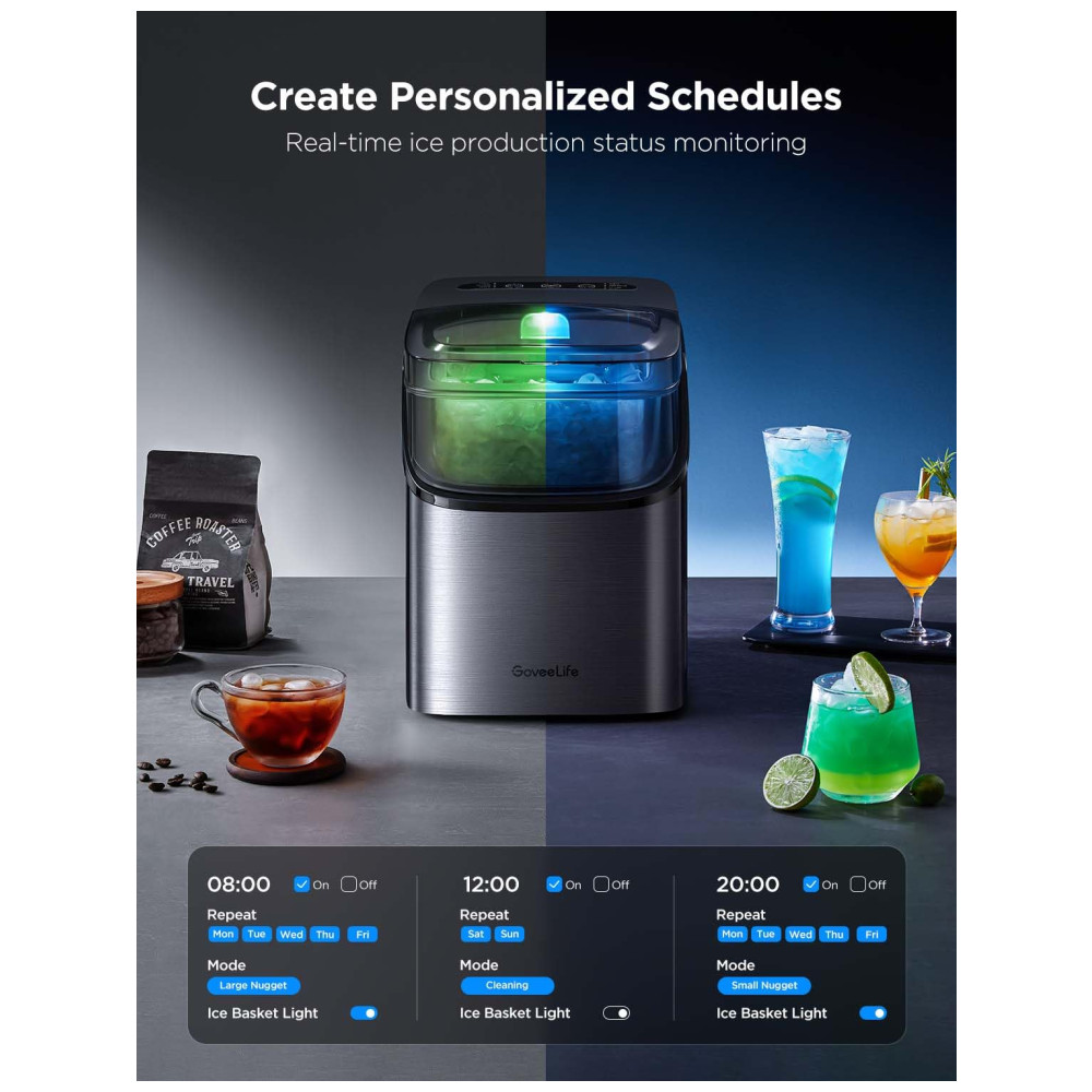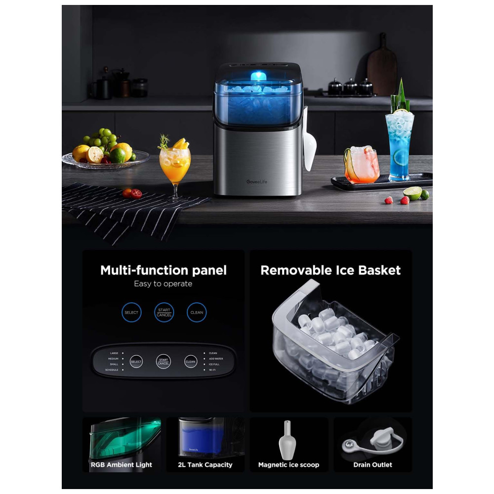 Máquina de Gelo Portátil e Silenciosa que Produz 12 kg em 24H com Função de Autolimpeza e Luzes RGB 110V 170W GoveeLife H717D Prata