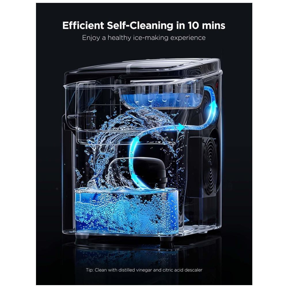 Autolimpeza Eficiente: Mantenha sua máquina de gelo limpa e higiênica com a função de autolimpeza. Com um simples toque no botão “Clean”, o ciclo de 10 minutos pode ser personalizado pelo aplicativo para se adequar aos seus intervalos de limpeza, garantindo gelo sempre fresco e saudável.