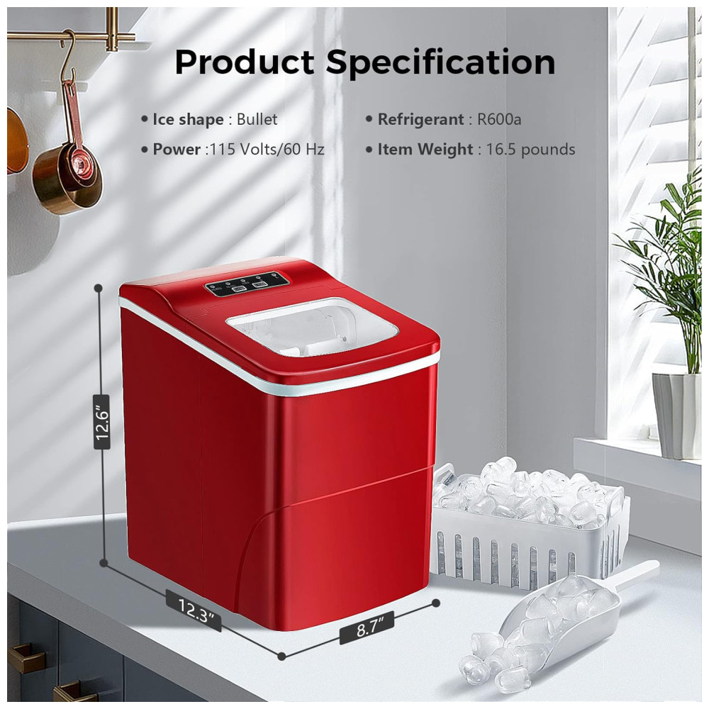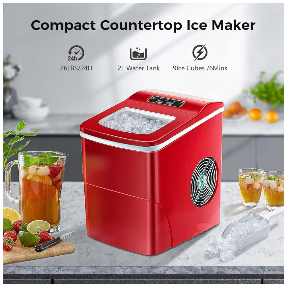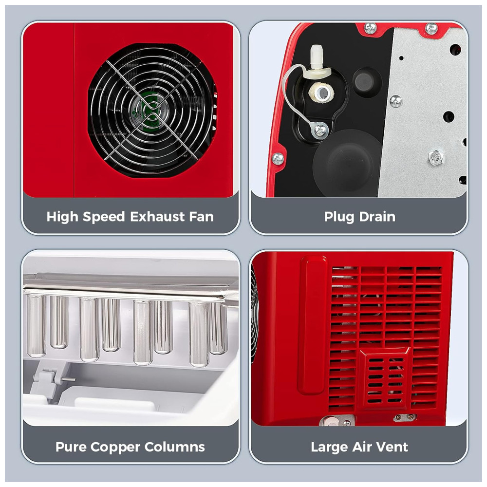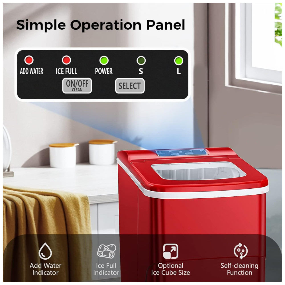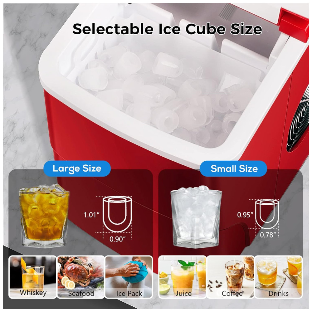 Máquina de Gelo Portátil Produz 12kg Dia 9 Cubos 6 8 min 110v AGLUCKY Vermelho