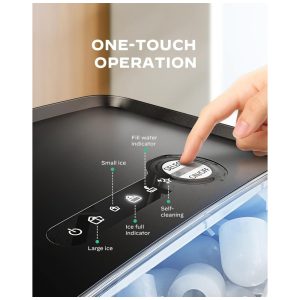 Painel de controle simples: Desfrute de gelo fresco com 3 passos fáceis! Encha o reservatório, ligue a unidade e selecione cubos de gelo pequenos ou grandes. A máquina de gelo possui uma luz indicadora para notificar quando a água precisa ser adicionada ou o gelo está cheio. Atualize sua casa ou escritório com uma máquina de gelo que é rápida e fácil de usar.