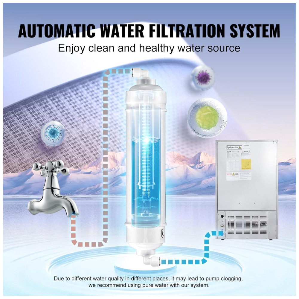 Máquina de Gelo Profissional 120 Kg em 24H Inclui Mangueira de Conexão e Filtro de Água 110V 750W Vevor SKF E150 Prata