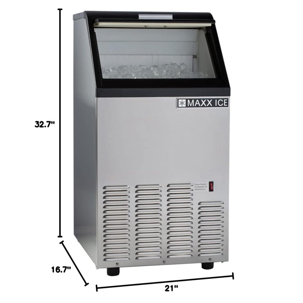 Máquina de Gelo Profissional de Bancada Produz 34 kg em 24H Aço Inoxidável 115V Maxx Ice MIM75 Prata