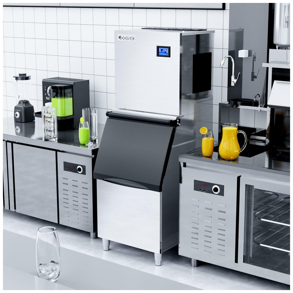 Alta capacidade: A máquina de gelo Coolski produz até 159 kg de gelo por dia com uma caixa de grande capacidade capaz de zenar até 136 kg de gelo, fornecendo um suprimento constante de gelo sob demanda. Desfrute de uma produção de gelo rápida e eficiente com um compressor potente projetado para produzir gelo de forma rápida e eficiente.