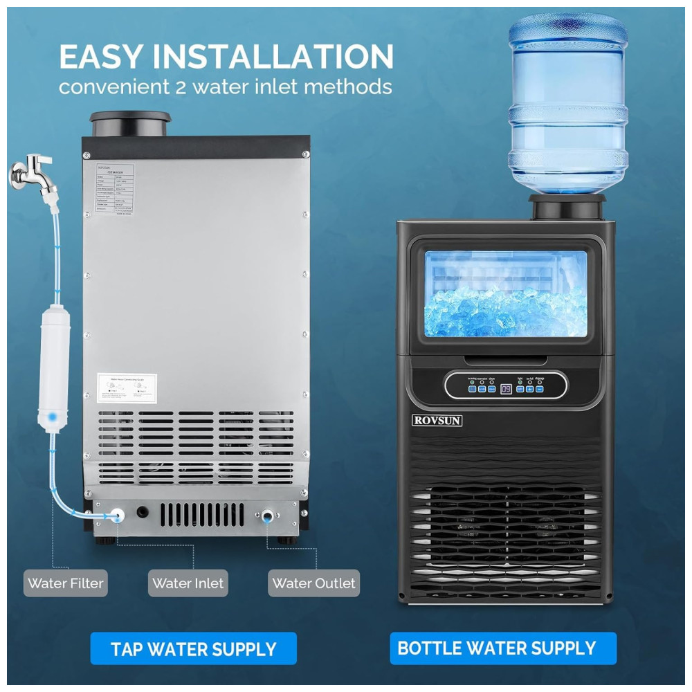 Damos grande importância à qualidade dos nossos produtos. Cada máquina de gelo ROVSUN é cuidadosamente fabricada e testada para garantir sua segurança e durabilidade. O dispositivo é feito de aço inoxidável durável, que tem resistência à ferrugem, estendendo sua vida útil. Se você está procurando uma máquina de gelo residencial e comercial leve e de alta qualidade, então nosso produto é a sua escolha ideal.