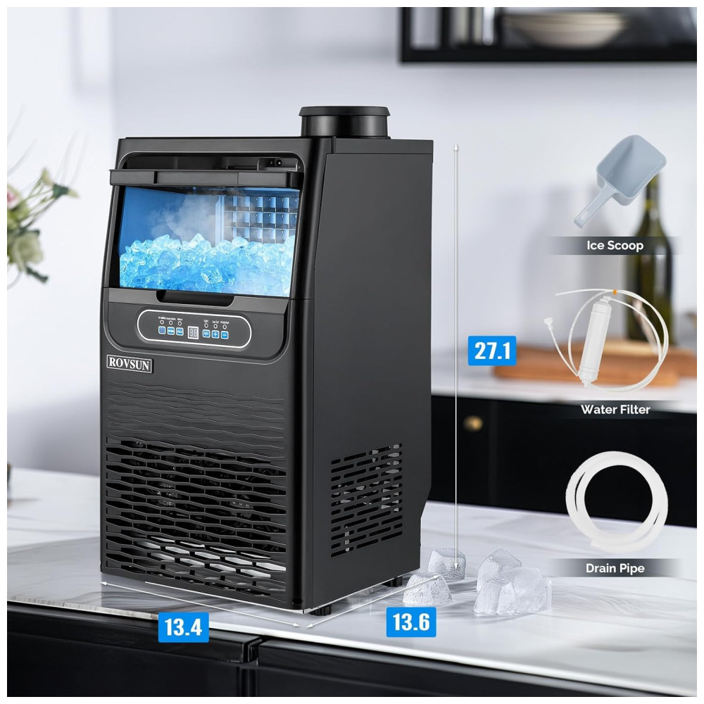 Máquina de Gelo Profissional Que Produz 40 kg em 24H com Função de Agendamento Tubo de Drenagem e Filtro de Água 110V 100W ROVSUN Preta