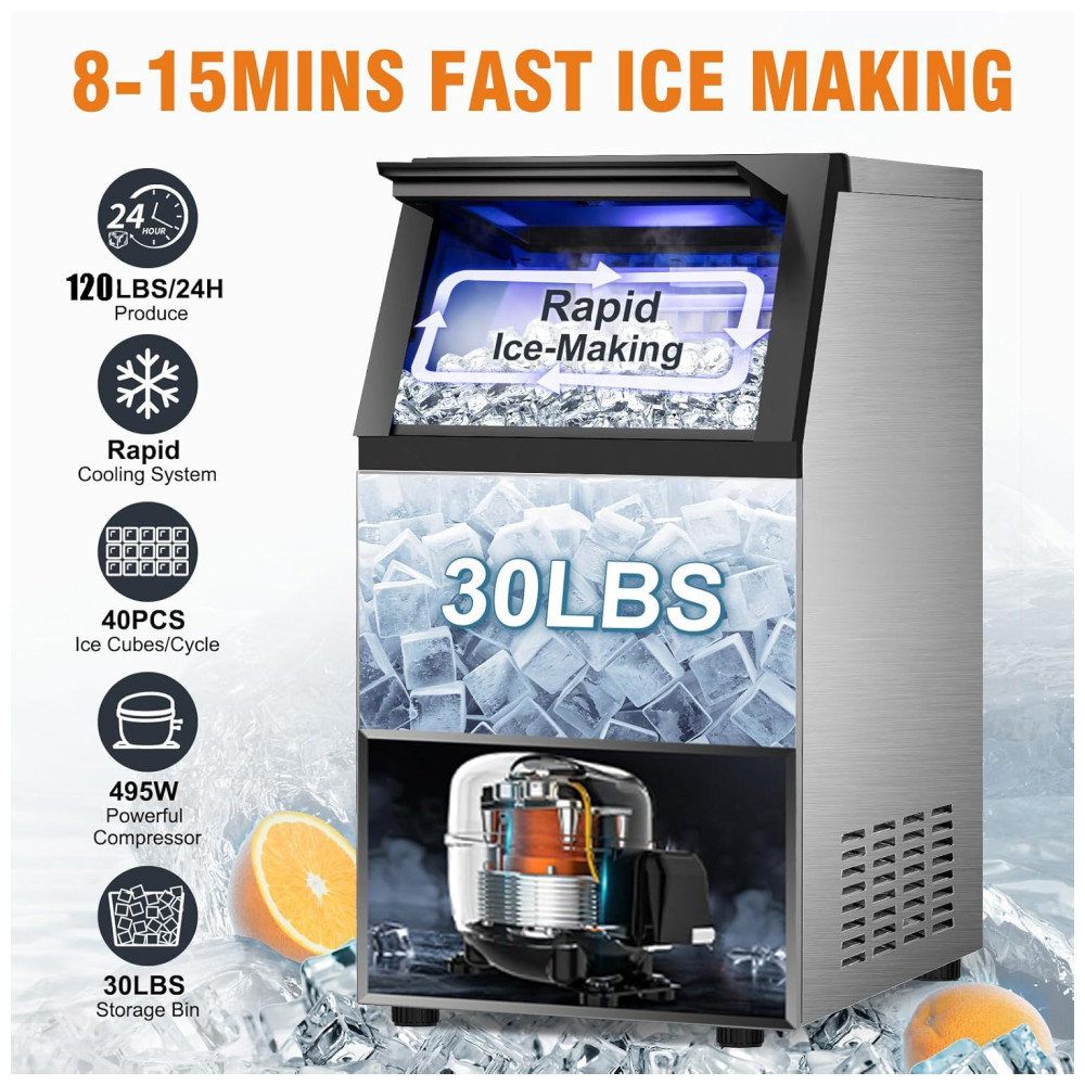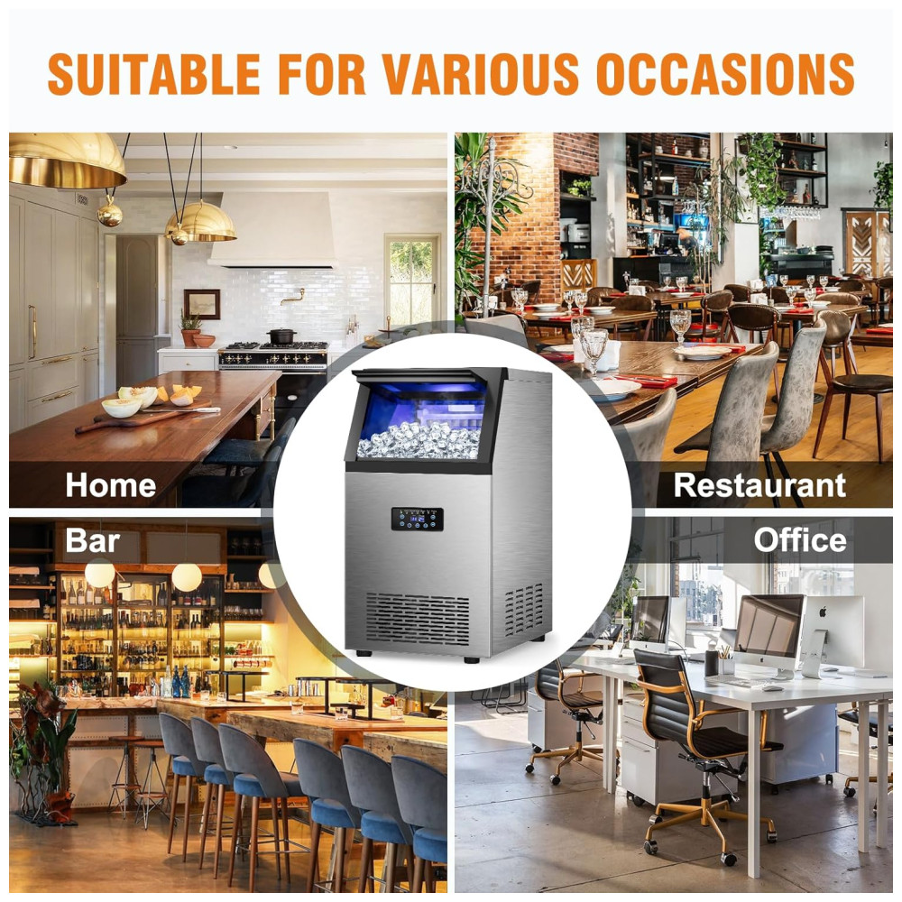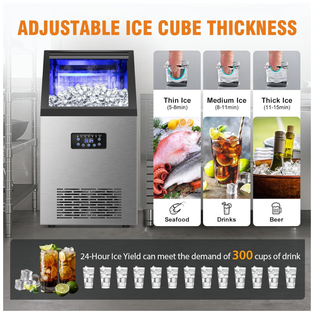 Nunca mais fique sem gelo! A máquina de gelo comercial da RAPSUAR produz até 54,43 kg de gelo por dia e possui um recipiente de armazenamento com capacidade para 13,61 kg. Diga adeus à falta de gelo e tenha sempre um suprimento contínuo para suas bebidas e festas.