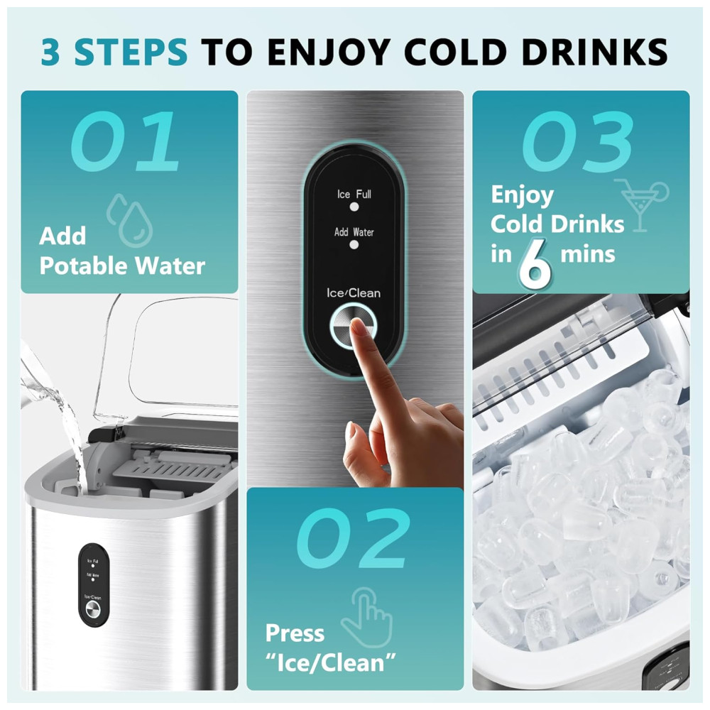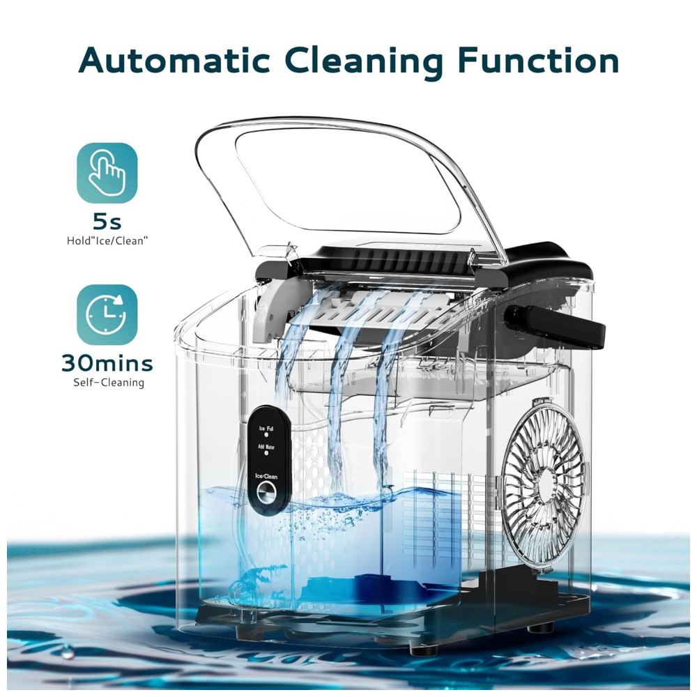 Fácil de usar e economia de energia: Com uma janela grande e transparente, é possível acompanhar o processo de produção de gelo. Equipado com um compressor de 170 W, o consumo diário é de apenas 4 kWh, o que ajuda a reduzir sua conta de energia. O painel de controle é simples e intuitivo: basta adicionar água e pressionar o botão “Ice/Clean”, e pronto, você terá gelo fresquinho em questão de minutos.